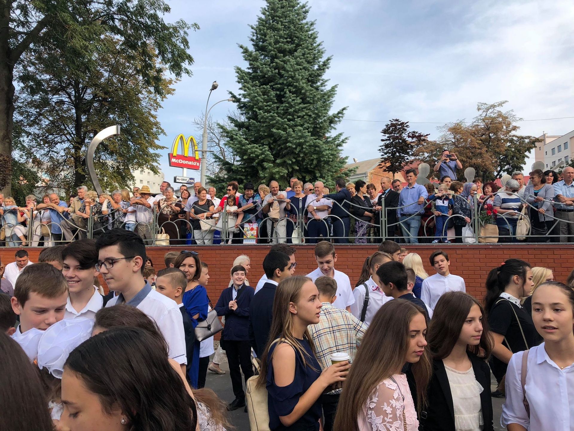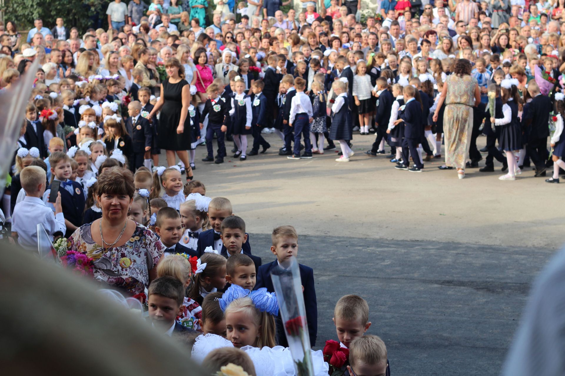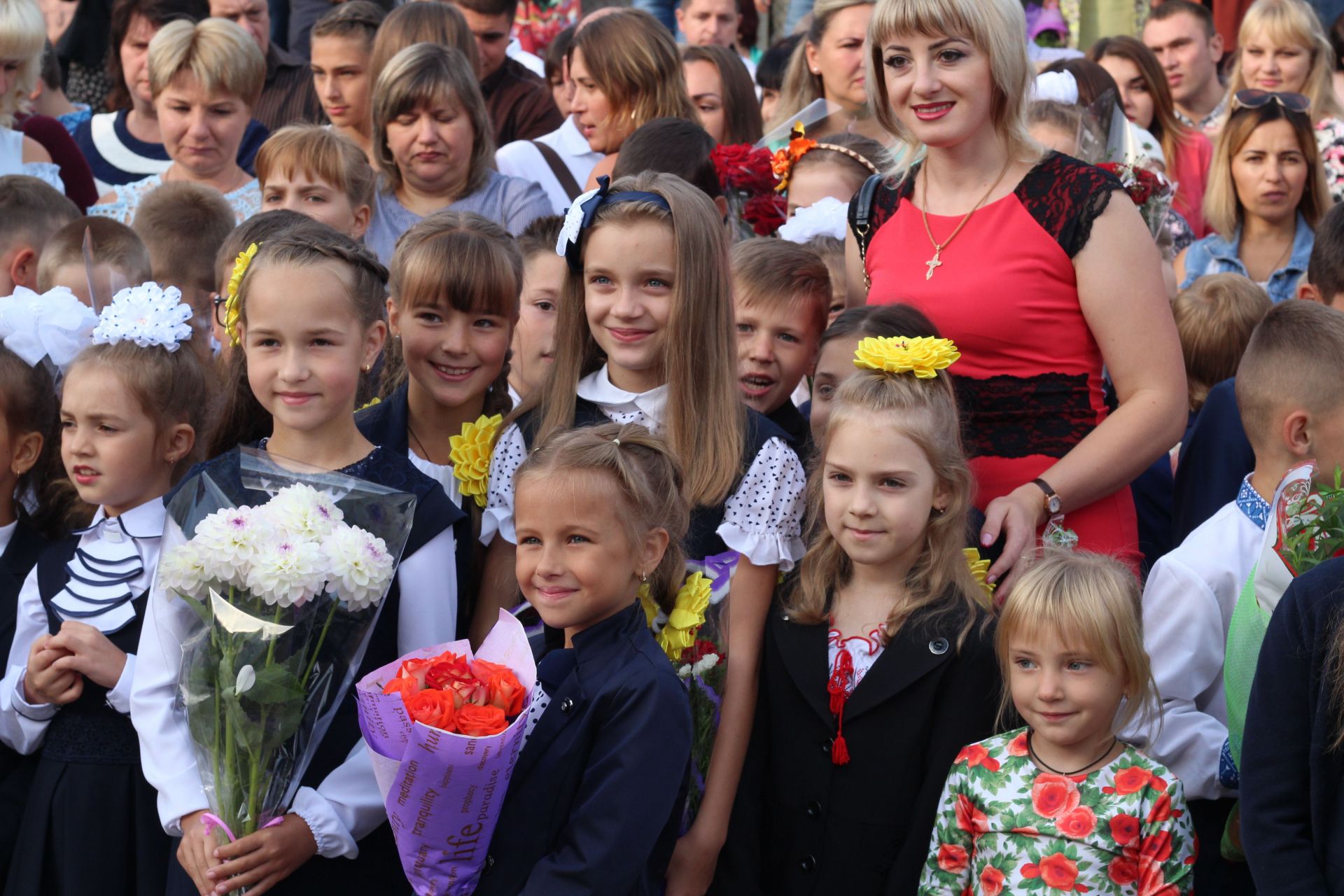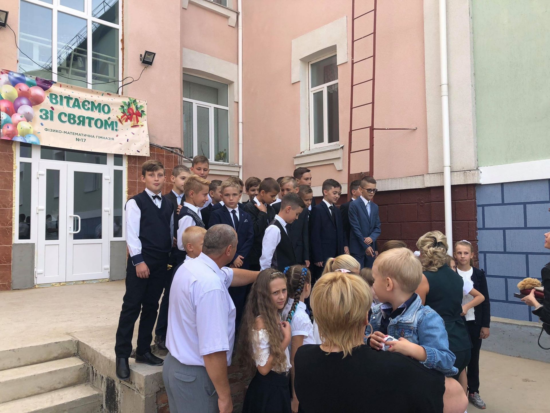 Діти стояли біля своїх однокласників, батьки споглядали за дійством за їх спинами та попід парканом. Журналіст нарахував аж дев’ять перших класів: від букви А до букви З (класу на букву Ґ не було - авт.).