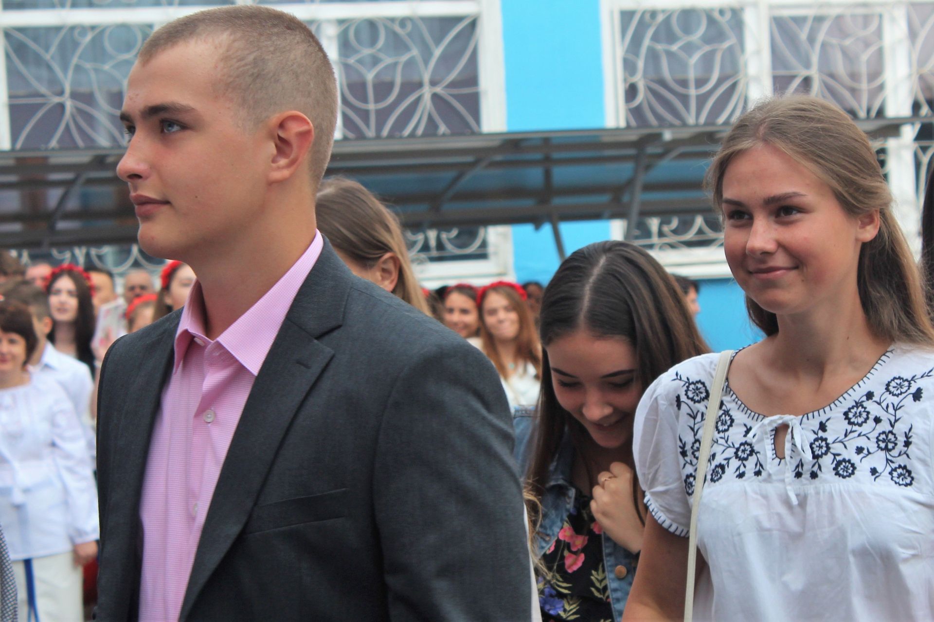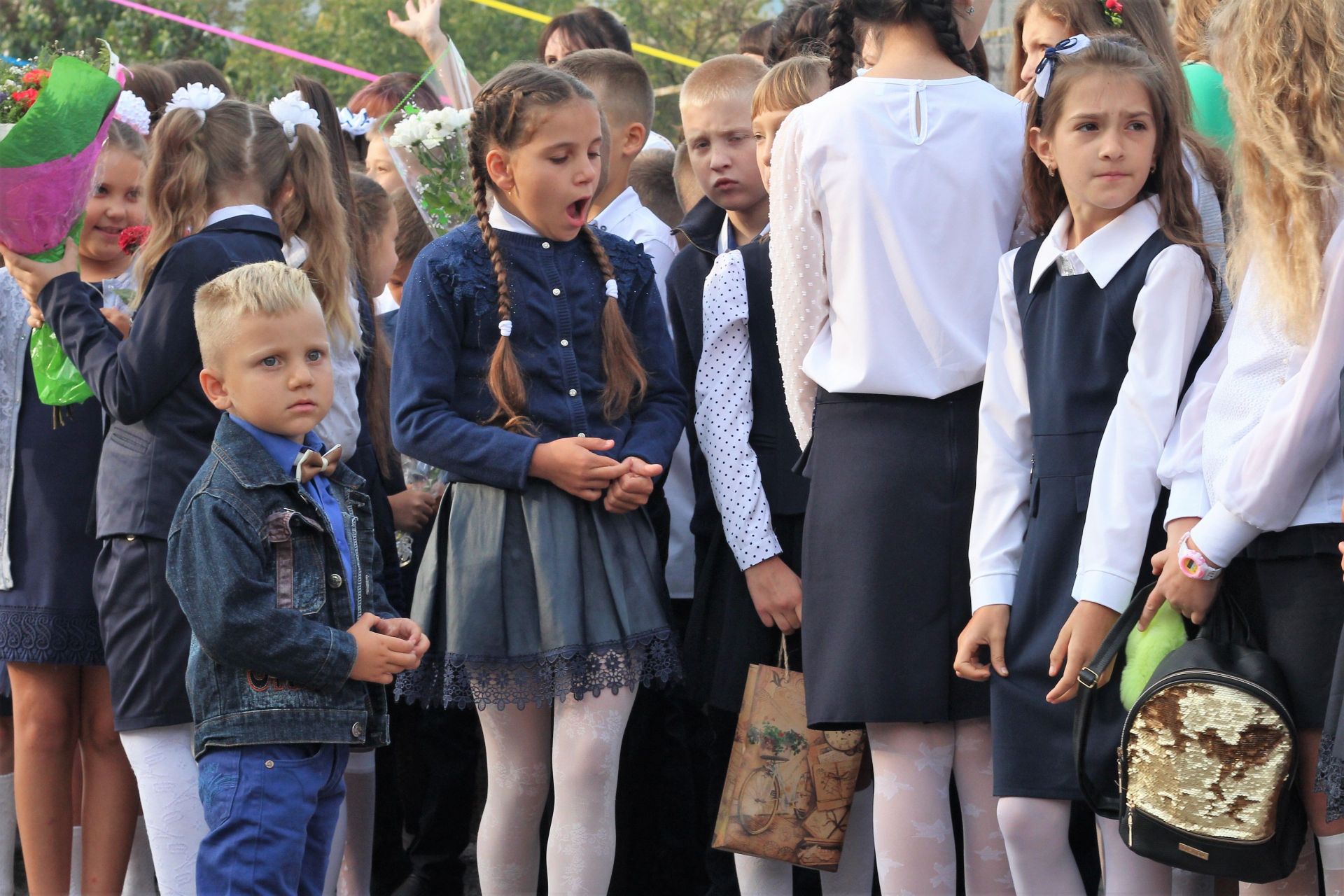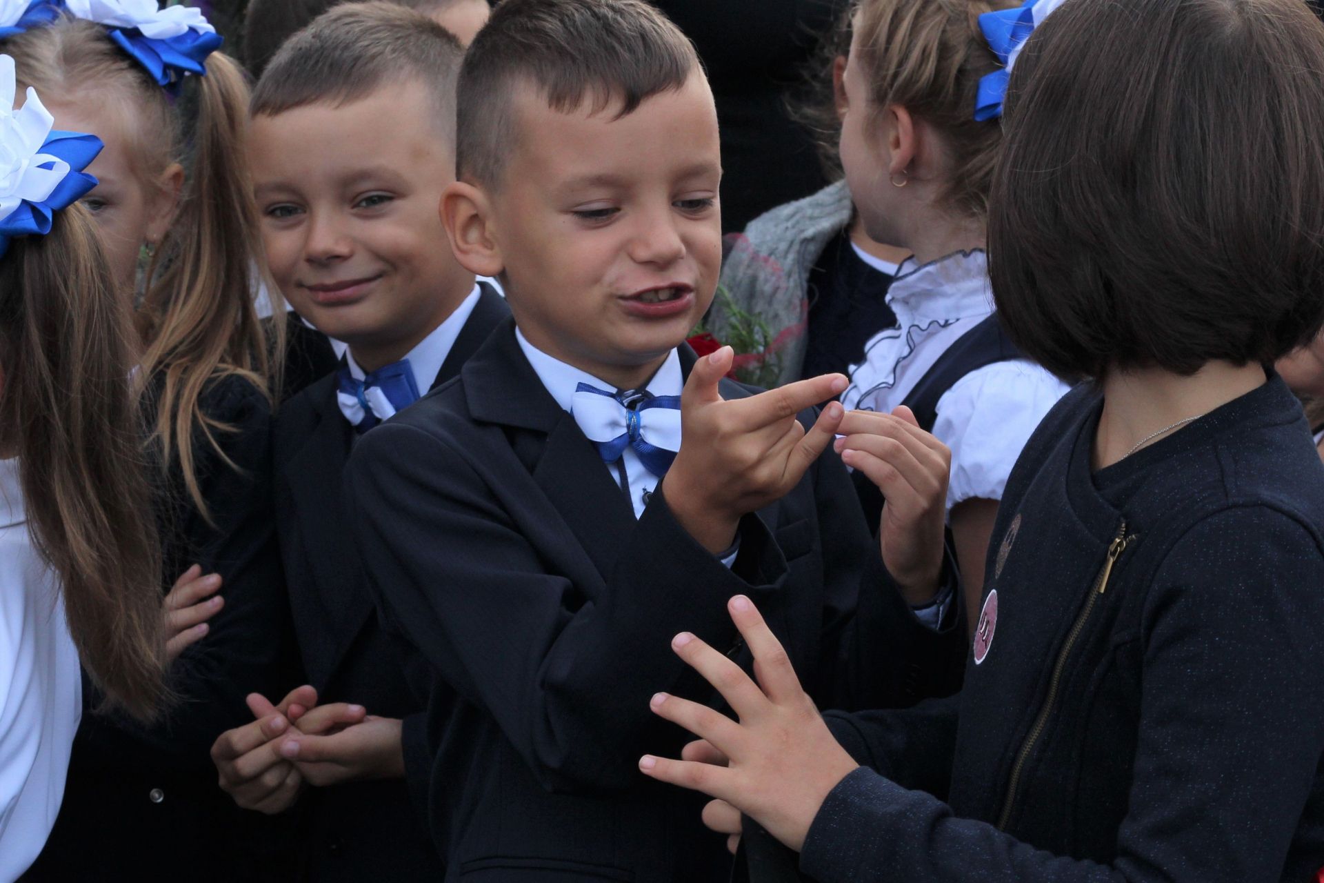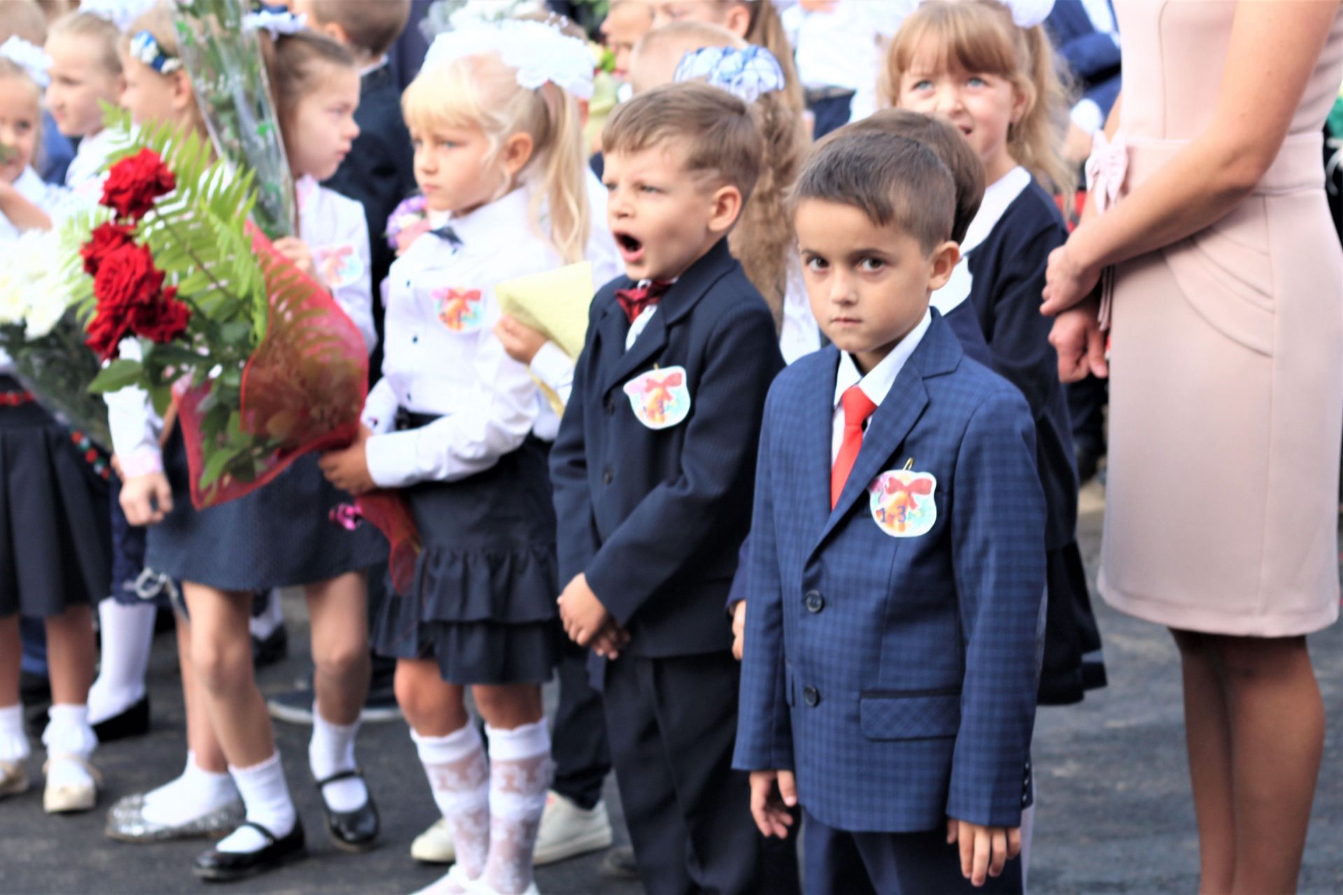 Діти стояли біля своїх однокласників, батьки споглядали за дійством за їх спинами та попід парканом. Журналіст нарахував аж дев’ять перших класів: від букви А до букви З (класу на букву Ґ не було - авт.).