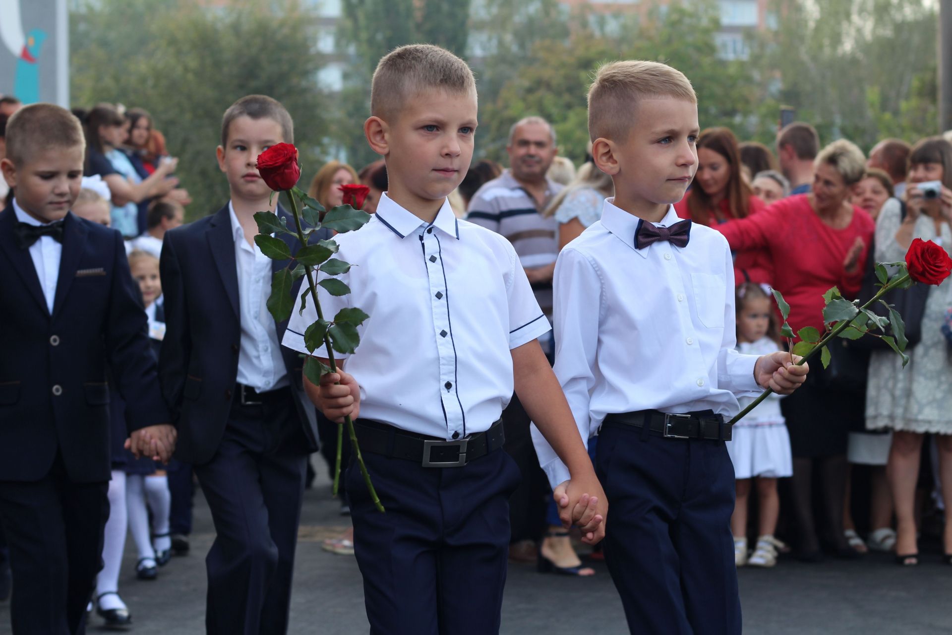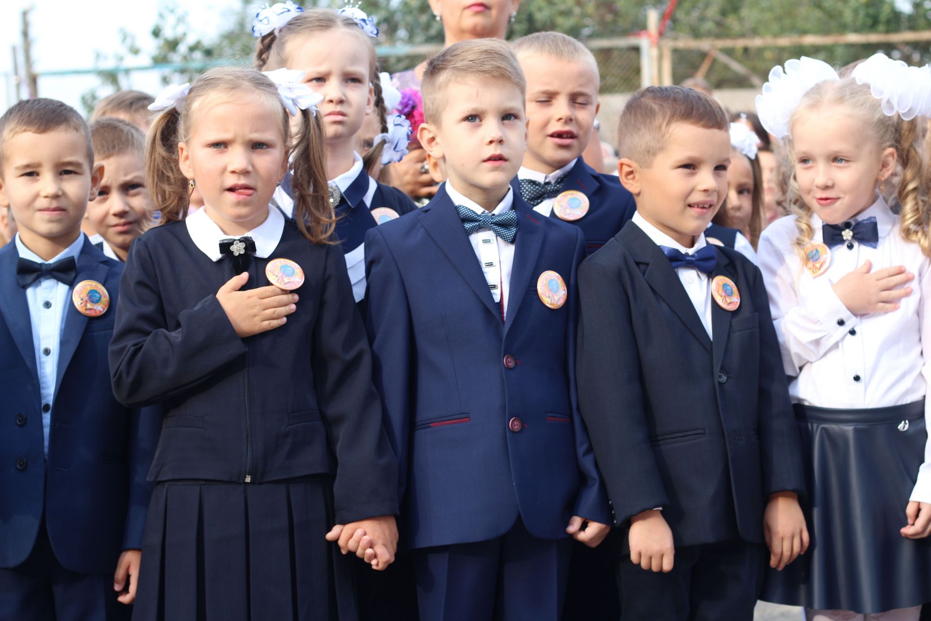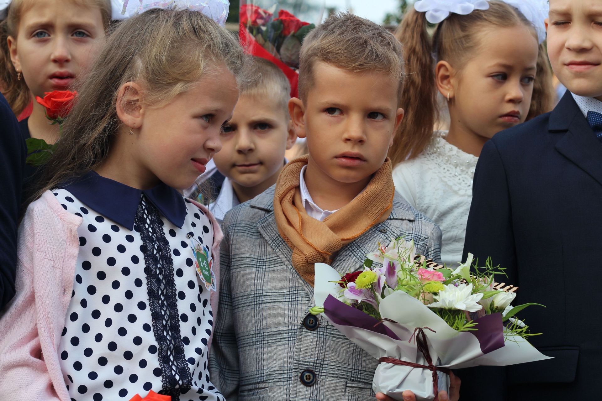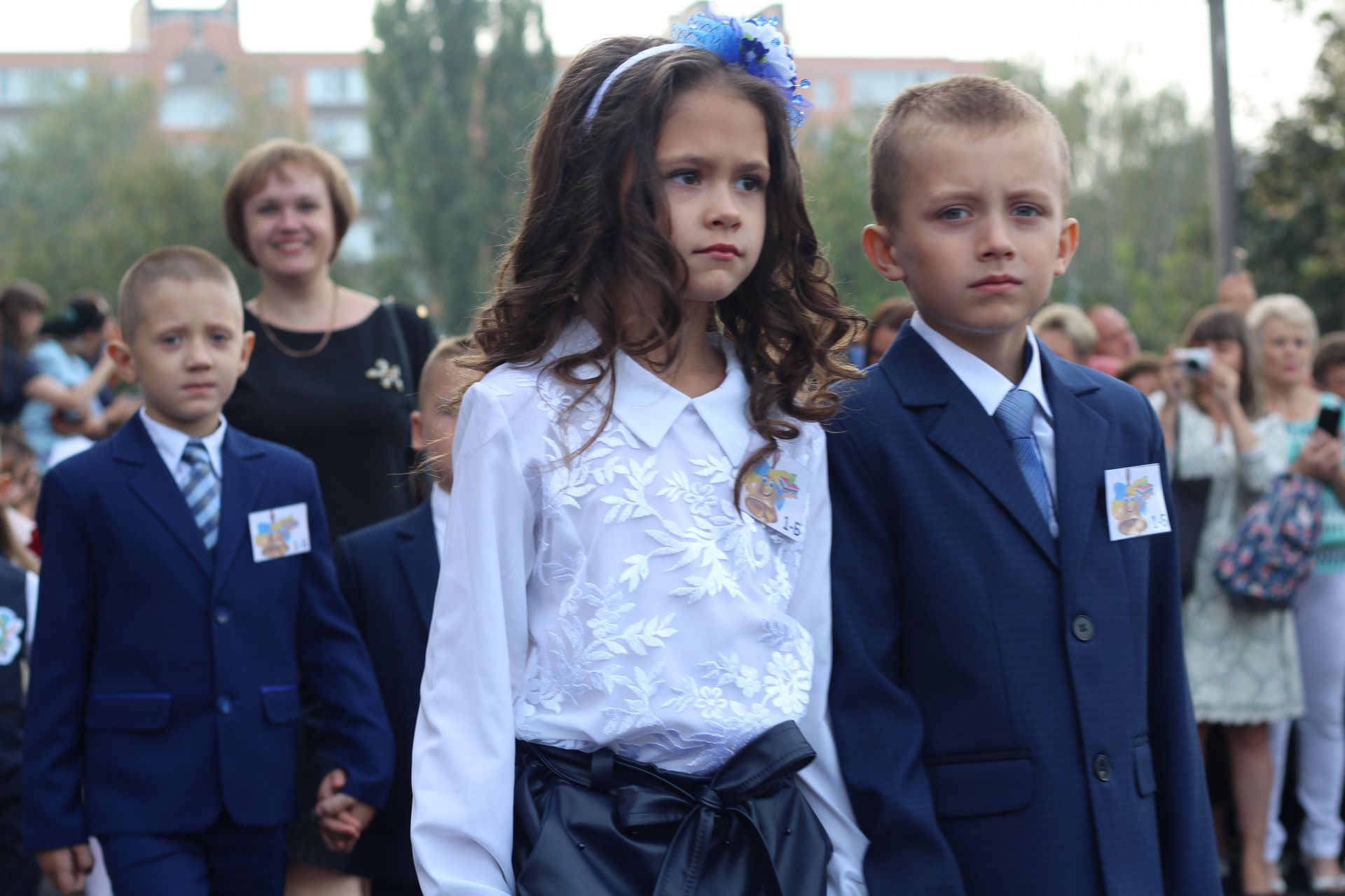 Діти стояли біля своїх однокласників, батьки споглядали за дійством за їх спинами та попід парканом. Журналіст нарахував аж дев’ять перших класів: від букви А до букви З (класу на букву Ґ не було - авт.).