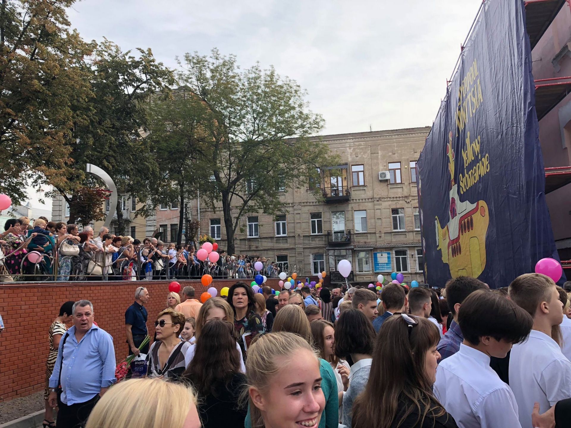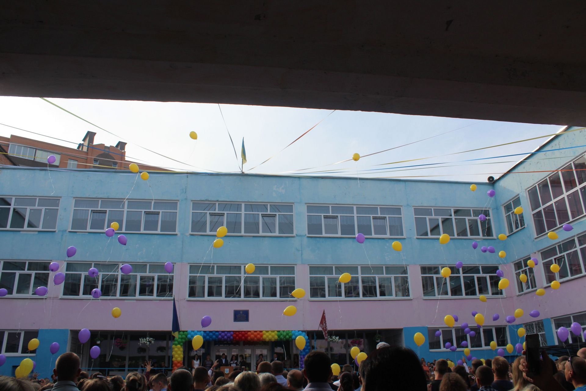 У цьому закладі ми встигли потрапили лише на завершальну частину урочистої лінійки. Учні з 5 по 11 класі відпустили в небо кульки, педагоги побажали їм гарного навчального року.