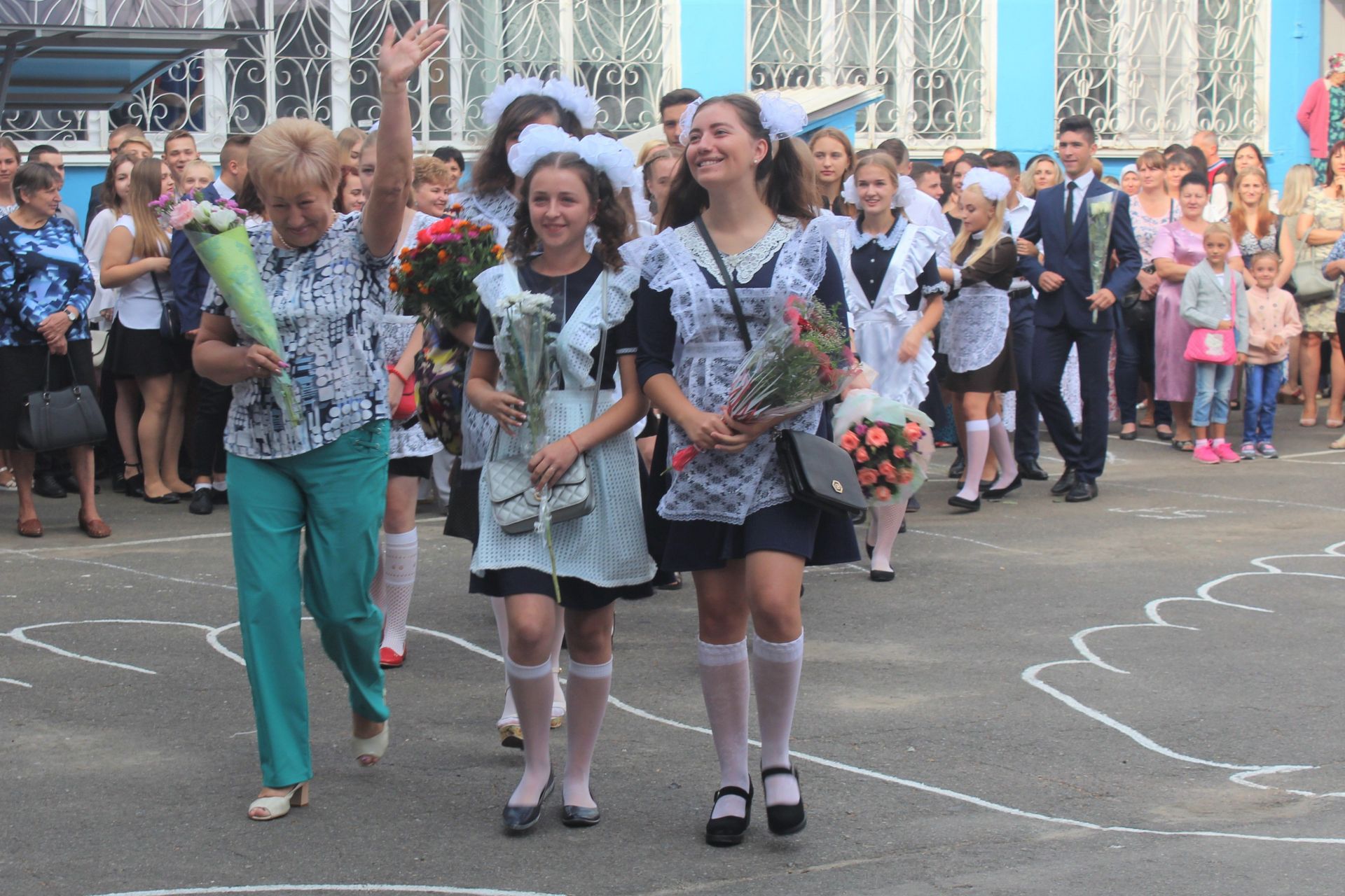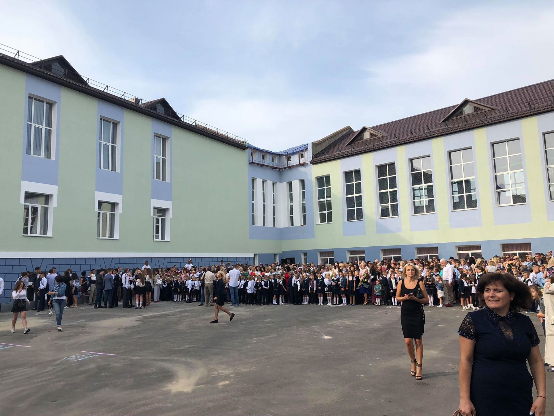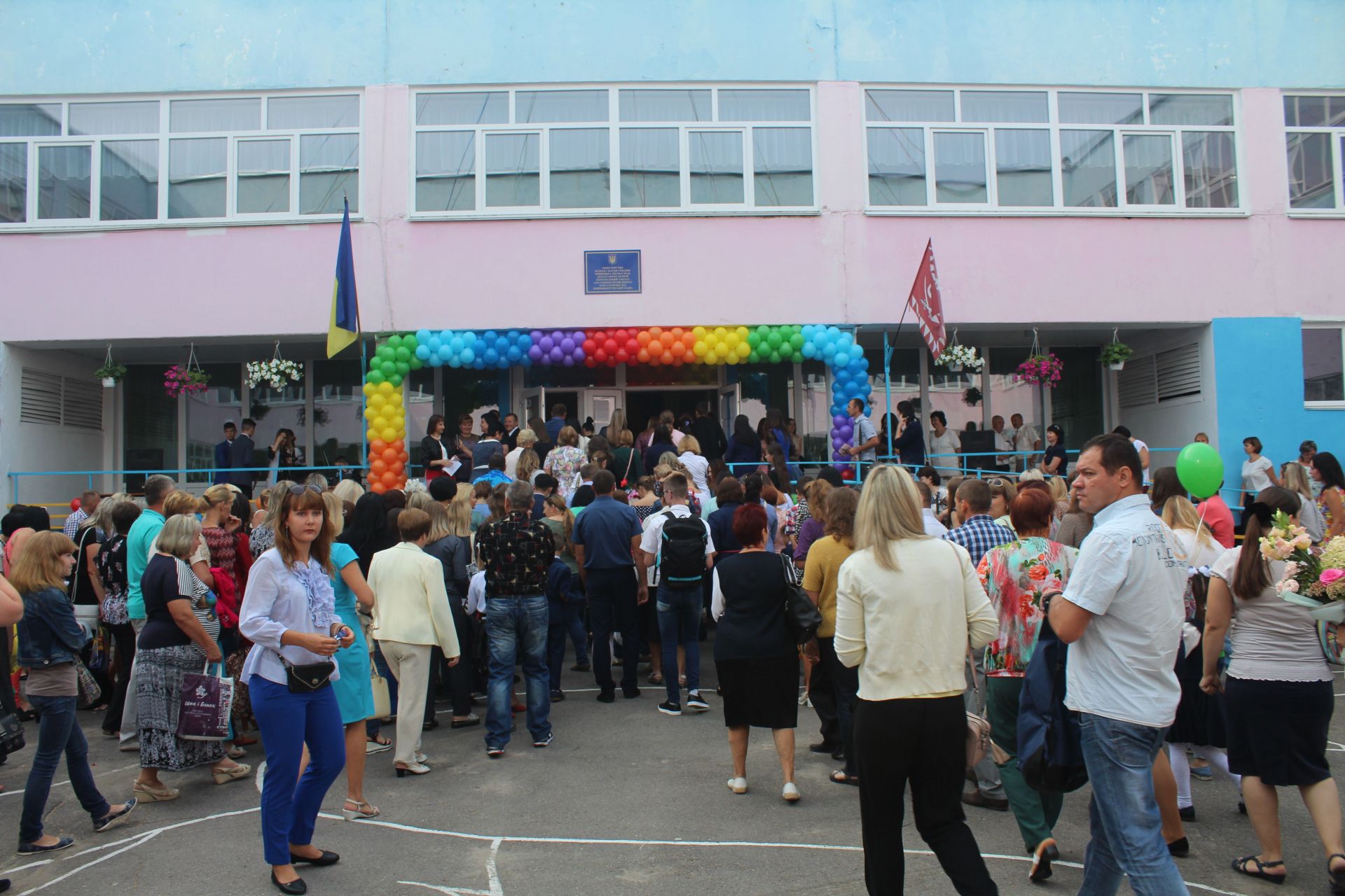 Цей заклад після оптимізації став школою 1-го ступеню, де вчаться тільки початкові класи. Але попри відсутність 5-11 класів, шкільне подвір’я було заповнено вкрай. Усі з квітами, маленькими презентами для вчителів.