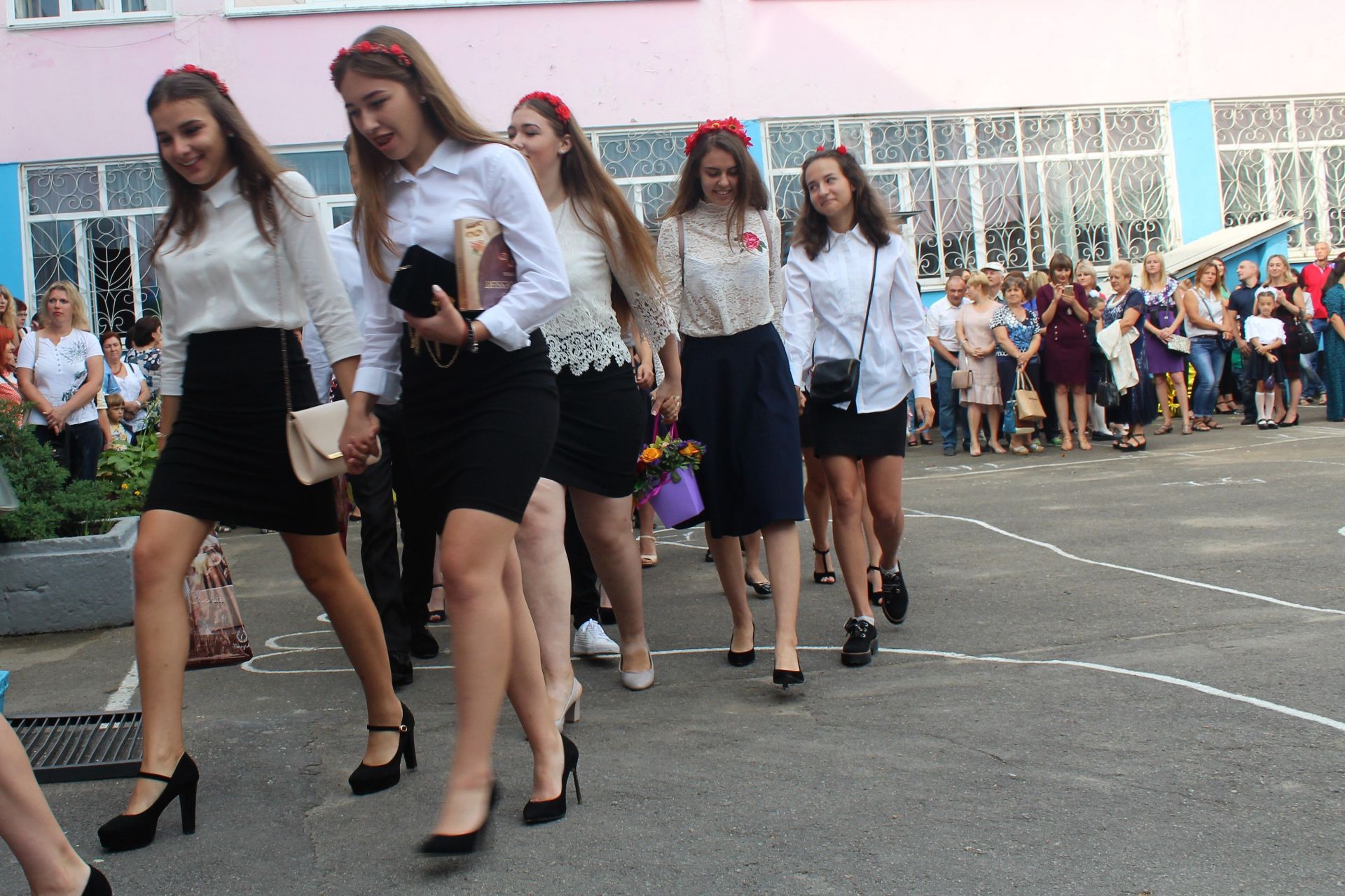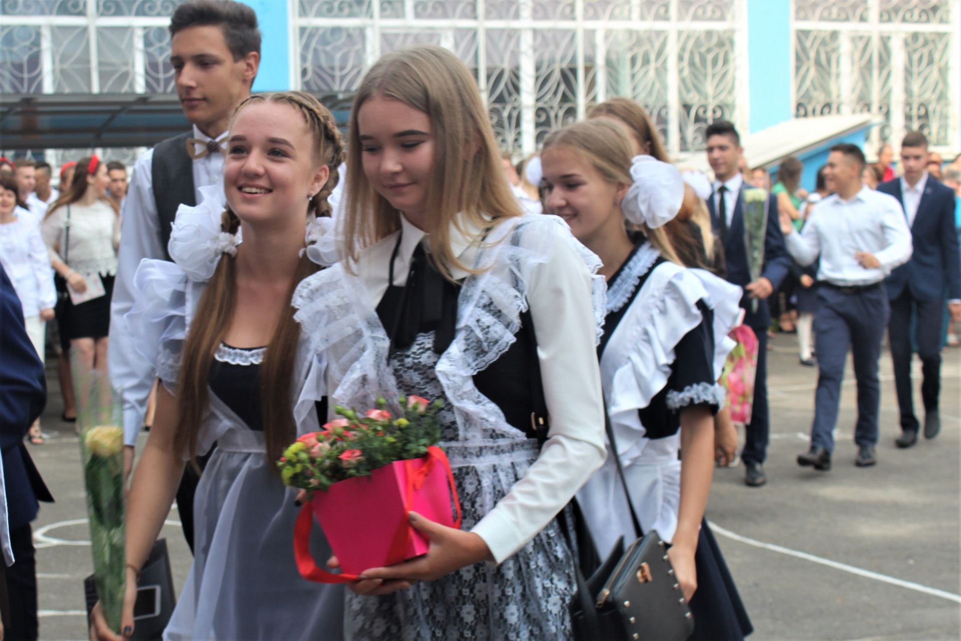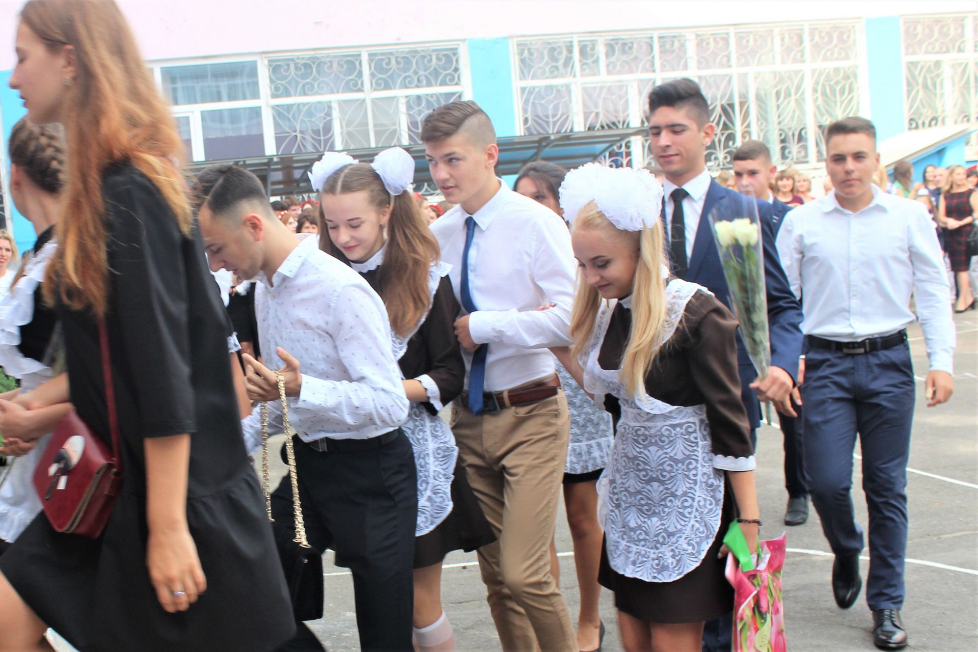 Цей заклад після оптимізації став школою 1-го ступеню, де вчаться тільки початкові класи. Але попри відсутність 5-11 класів, шкільне подвір’я було заповнено вкрай. Усі з квітами, маленькими презентами для вчителів.