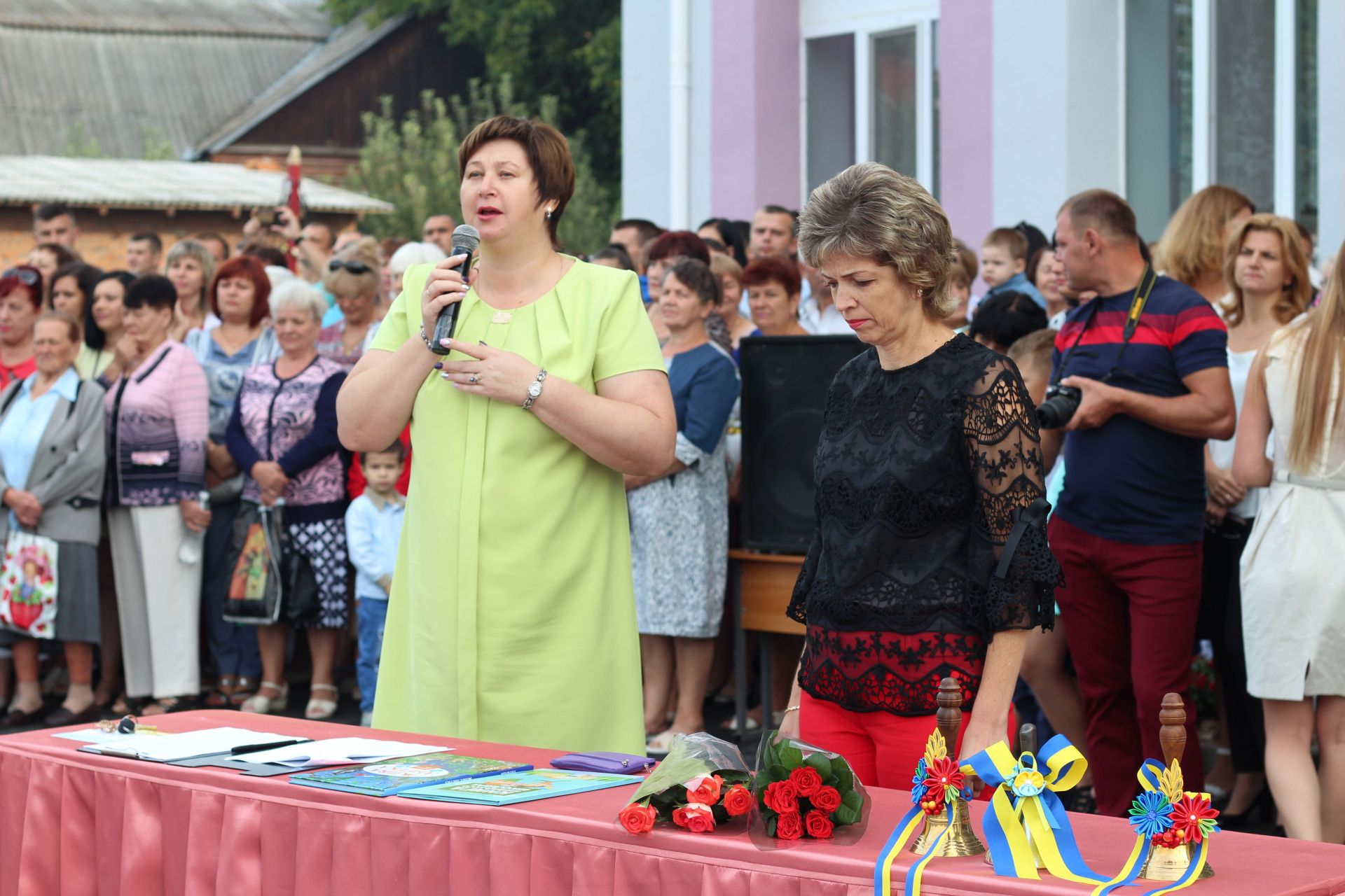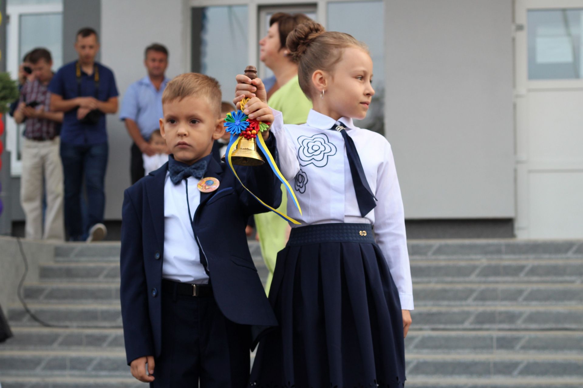 На урочистостях співали вихованці школи, виносили прапор України та одразу три пари школярів подзвонили в дзвіночки. Після того, першокласників запросили на їх перший урок. Урочиста лінійка тривала близько півгодини.