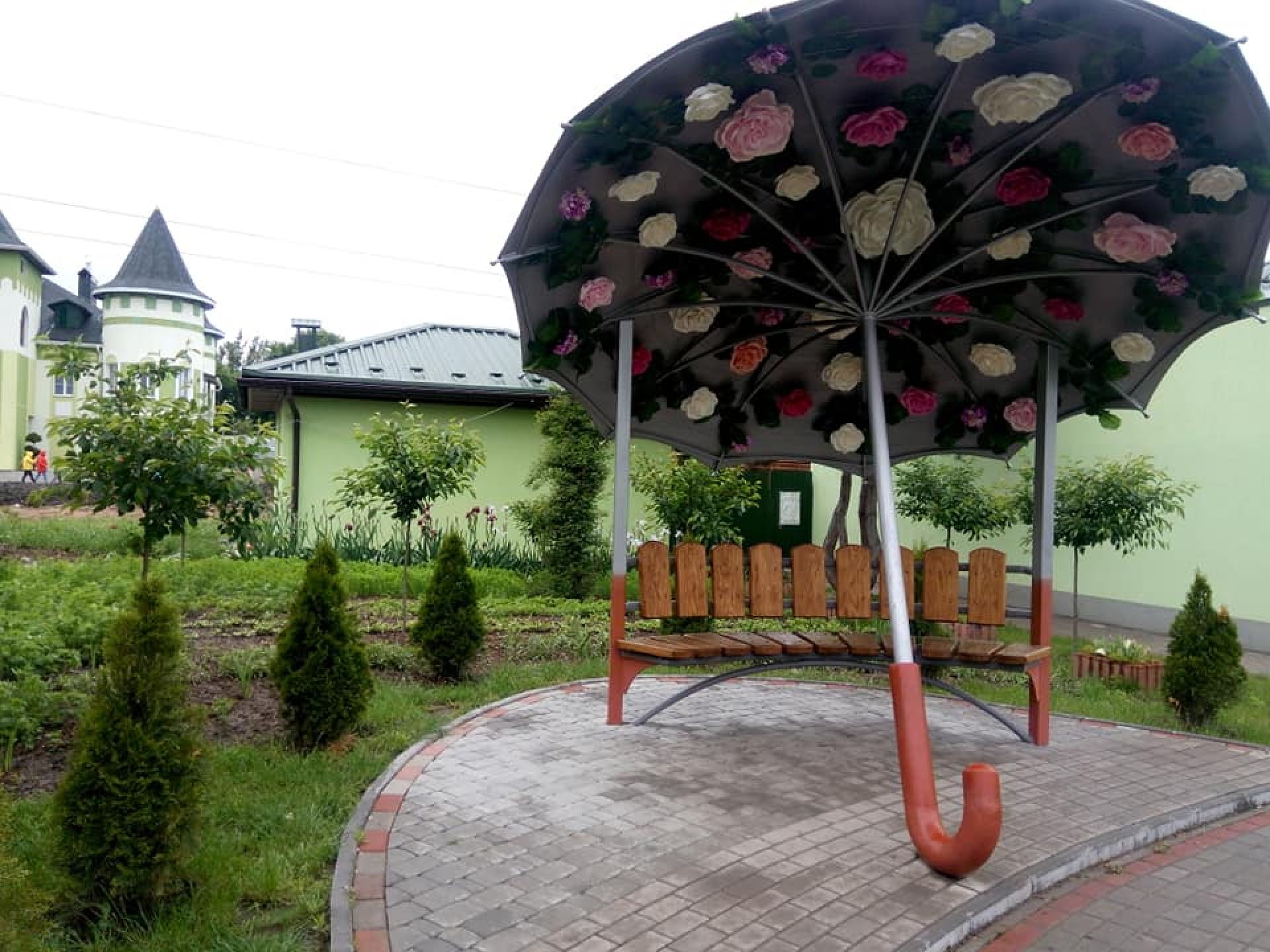 На території Подільського зоопарку є фотозона з величезною парасолею. Територію біля цього місця постійно оновлюють. Цього разу родзинку додали і самій парасолі.