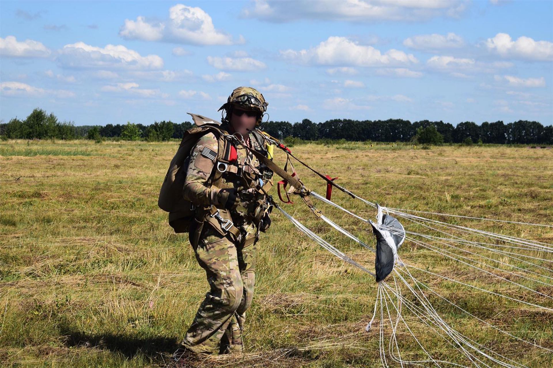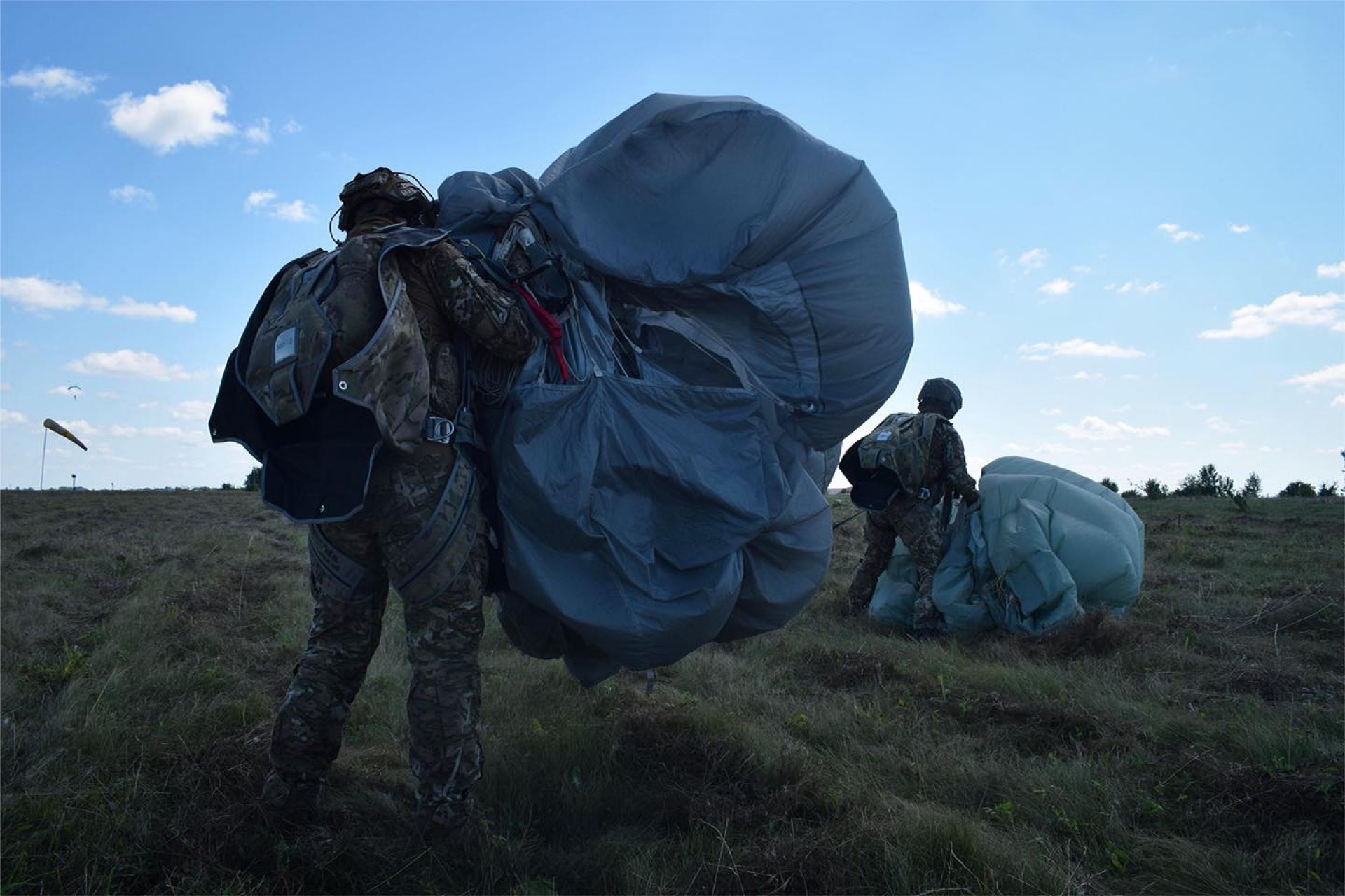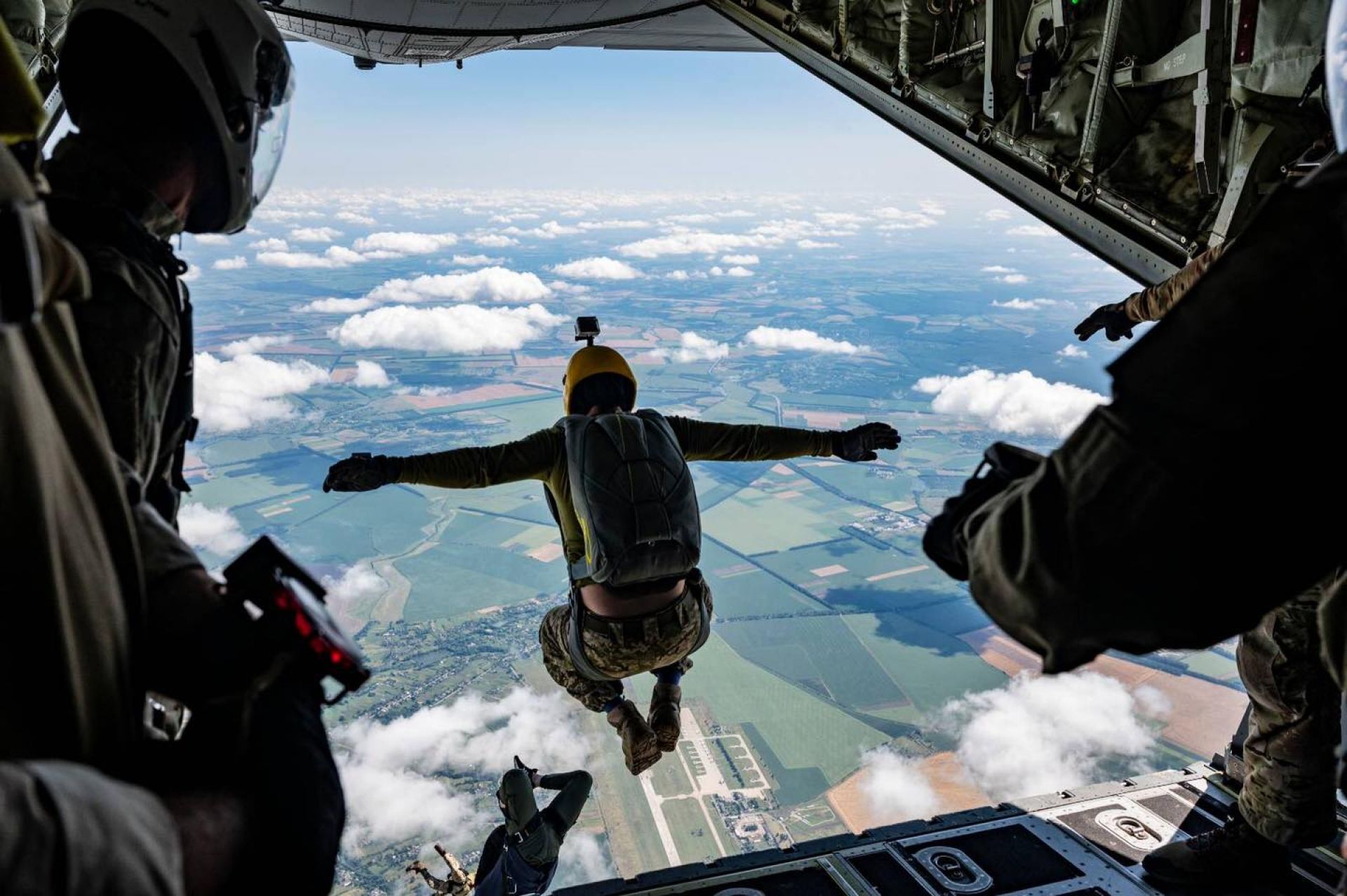 - У рамках спільних навчань з 352d Special Operations Wing оператори Сил спеціальних операцій ЗС України виконали стрибки з парашутними системами типу «крило» в районі свого базування. Стрибали вони разом зі своїми американськими колегами.