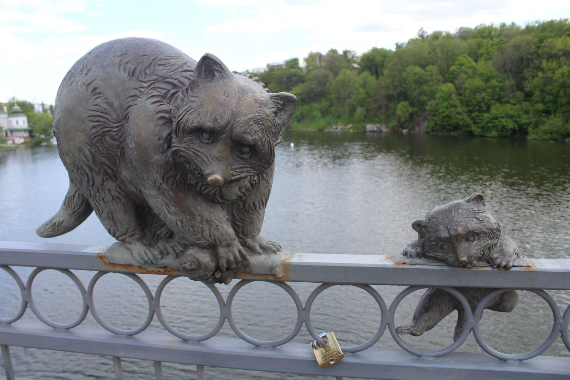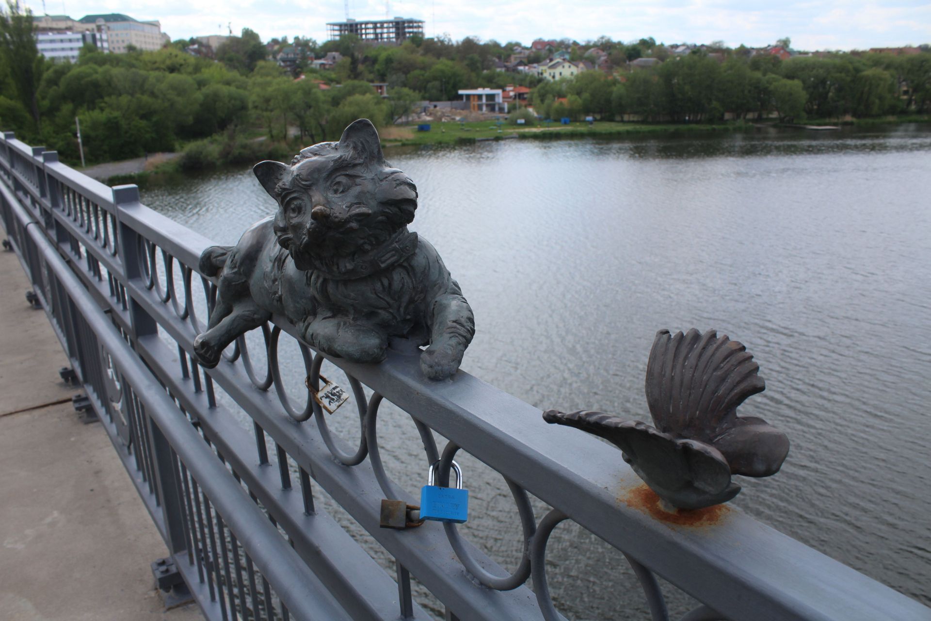 - З 2018 року на Київському мосту стали «оселятися» бронзові звірі. Скульптури котів, гусаків та єнотів майстрував місцевий скульптур Володимир Оврах.
