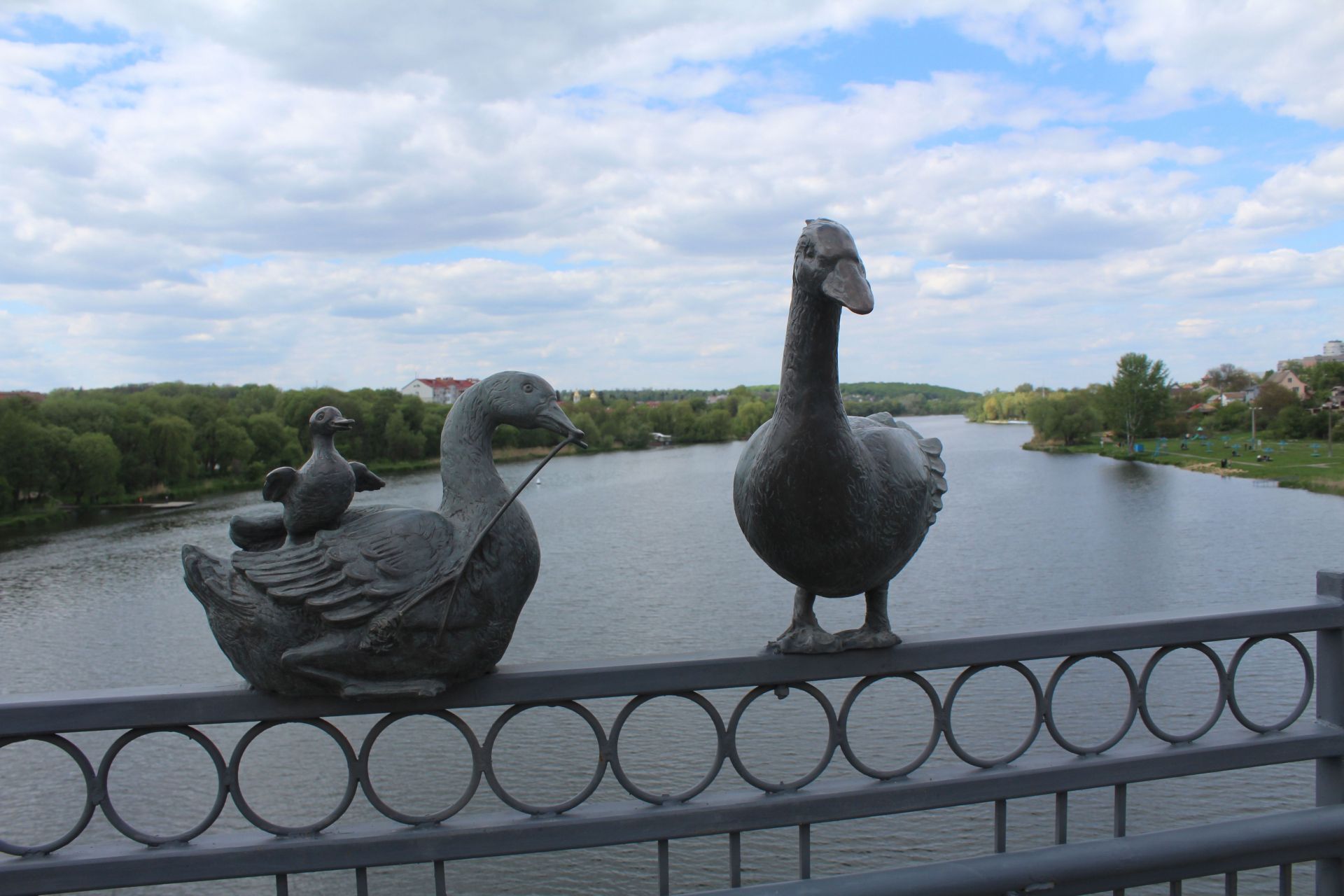 Але не всі вінничани оцінили цей сюрприз. Вже за кілька місяців «кота» виламали і скинули в Південний Буг. А шию «гусака» вандали викрутили настільки сильно, що фігурка заважала проходу по мосту, про що ми писали ось тут.