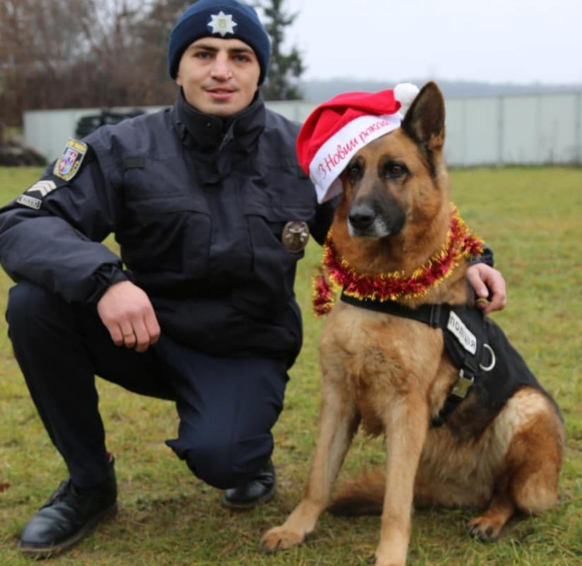 — Наші поліцейські-кінологи та їх чотирилапі напарники вітають з Новим 2021 роком! Щастя, успіхів і добрих новин усім, — йдеться у повідомленні.