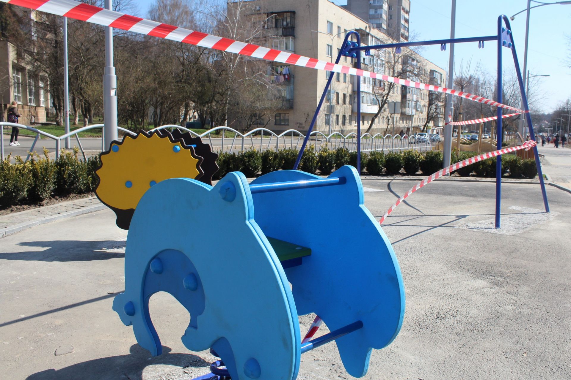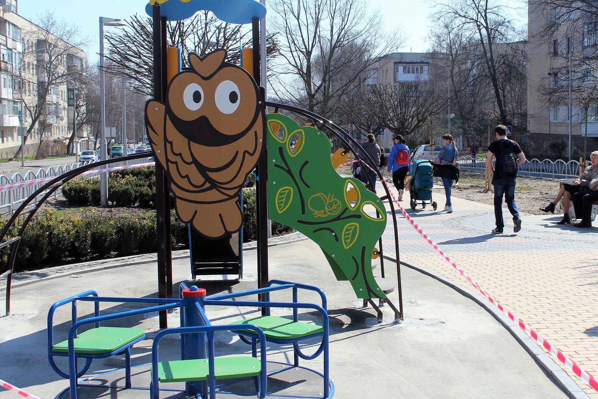 Між цими конструкціями зробили дитячу зону — поставили кілька дитячих майданчиків та загородили їх парканом від дороги.