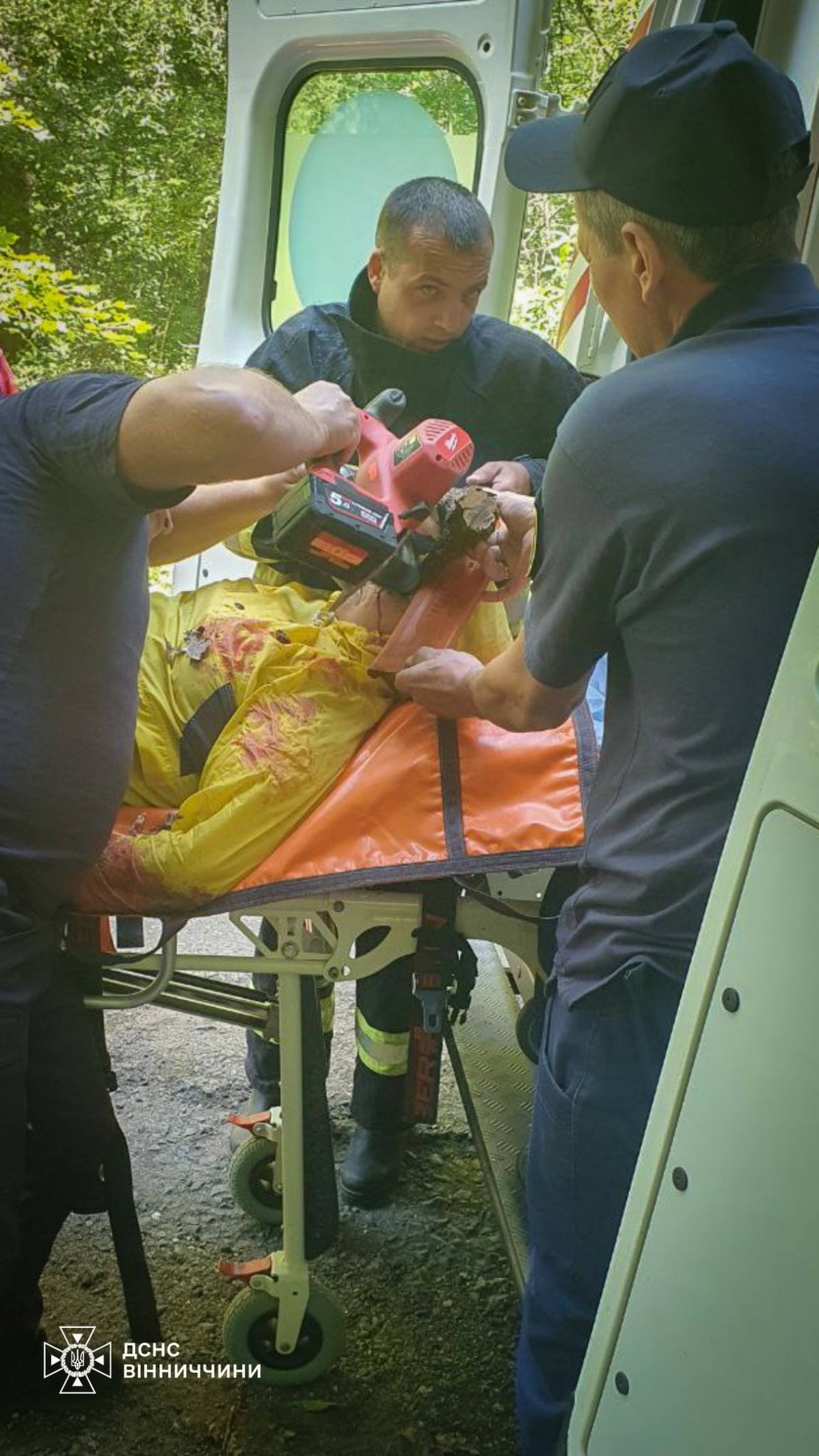 Перший випадок стався близько 9.00 ранку в селі Борисівка Вінницького району. 39-річна жінка отримала травму під час перебування в лісовому масиві. Медики звернулися до рятувальників за допомогою у піднятті жінки з яру.