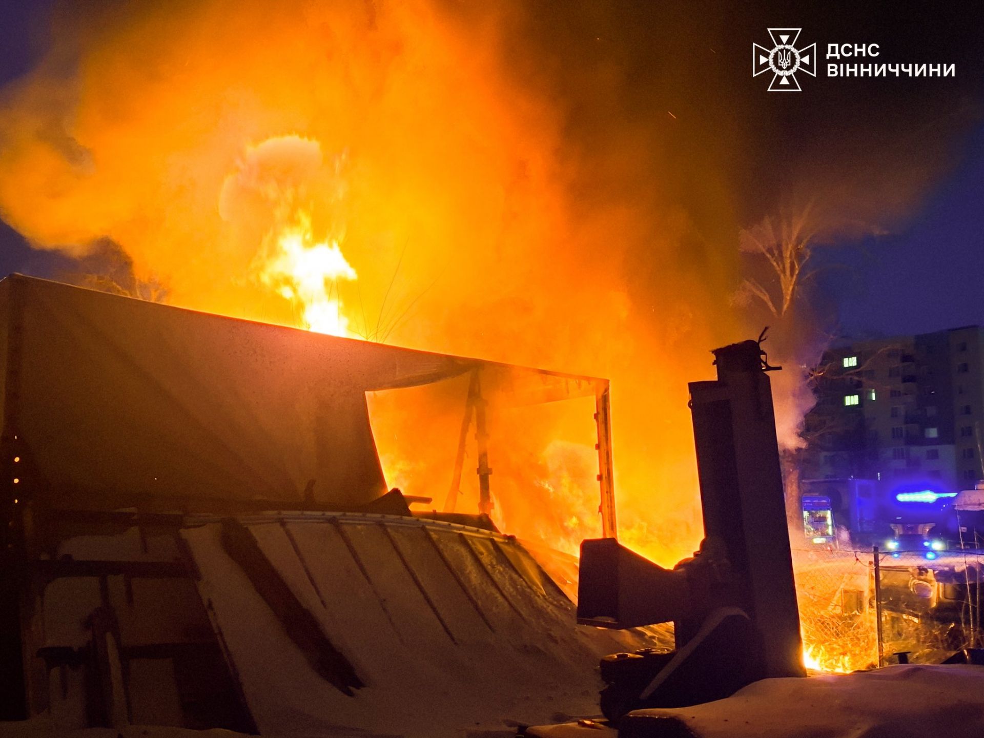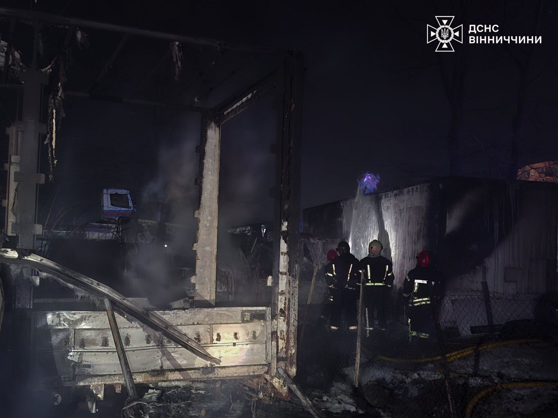 На Немирівському шосе 21 лютого сталася велика пожежа на території одного з підприємств. Як повідомили у Головному управлінні ДСНС області, на паркувальному майданчику спалахнуло близько 100 квадратних метрів площі.