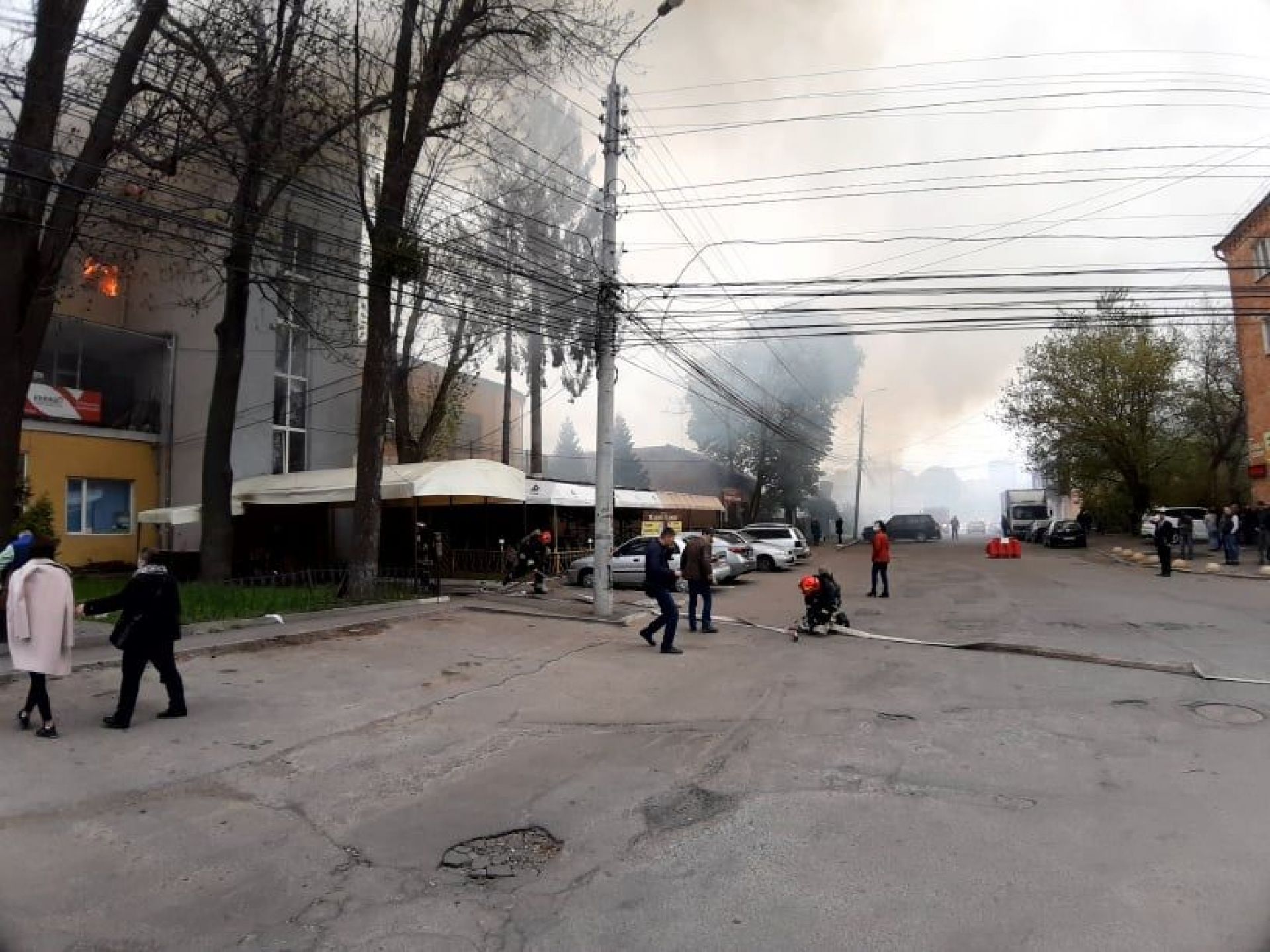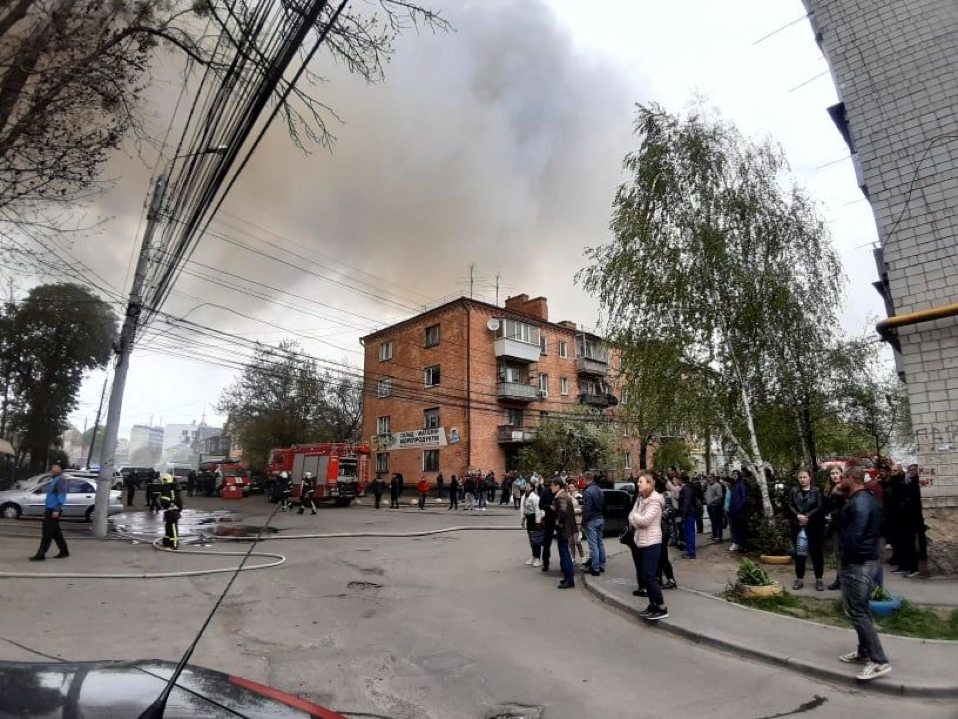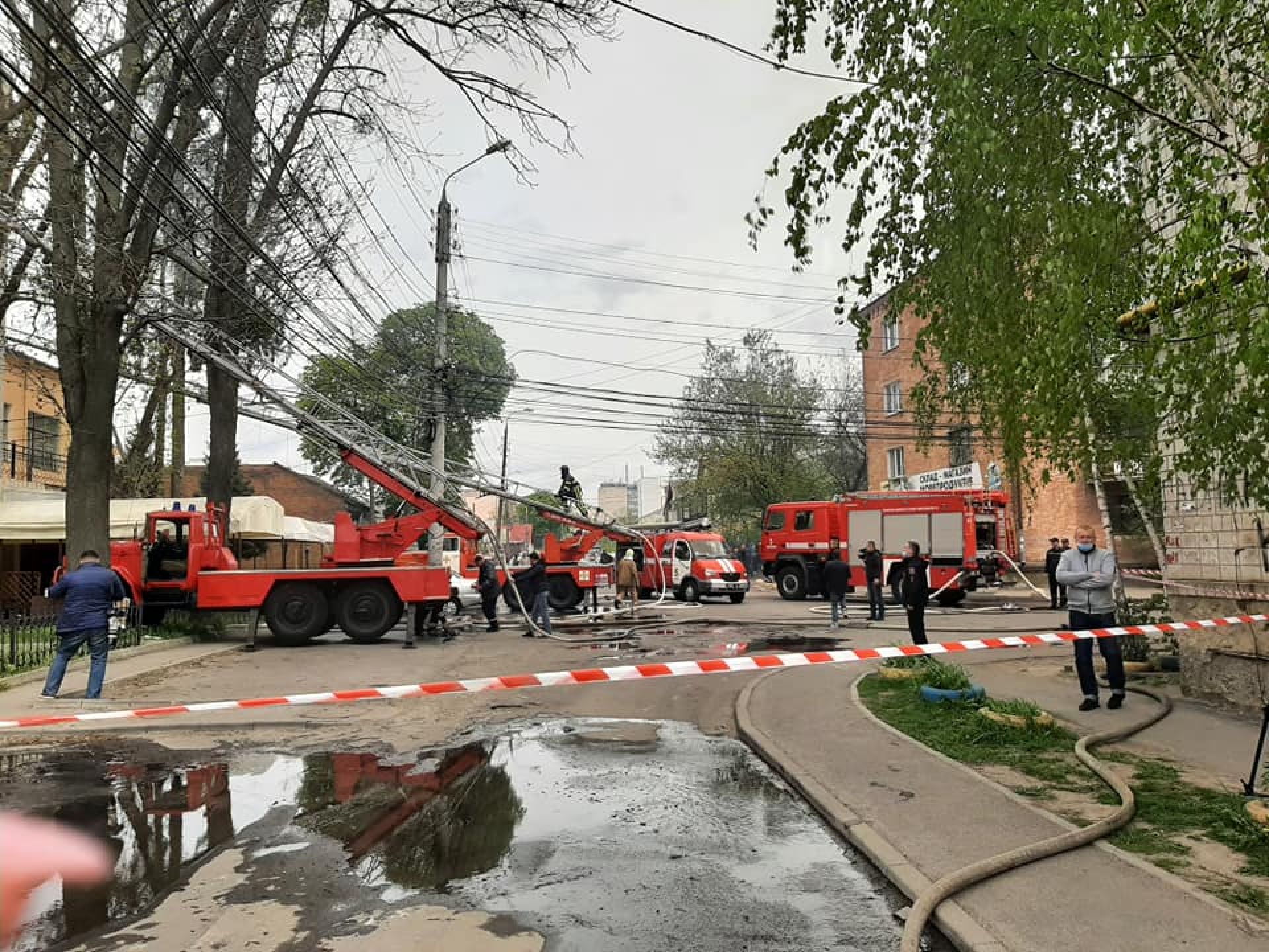 На вулиці Бевза нині не спокійно. З приміщень, де сталося займання евакуювати людей.