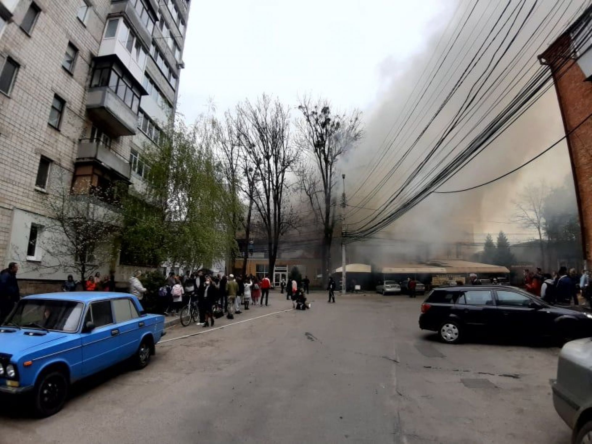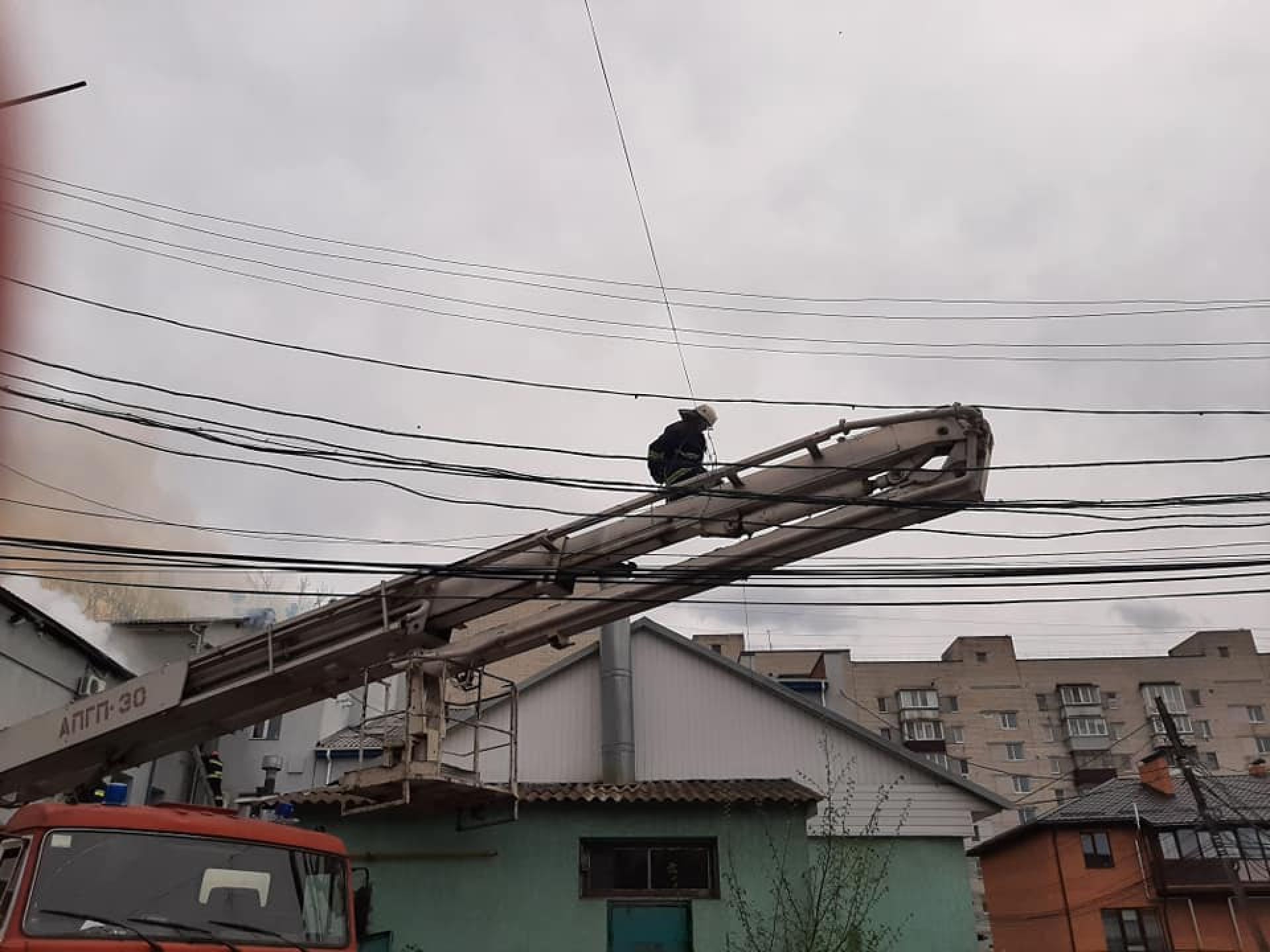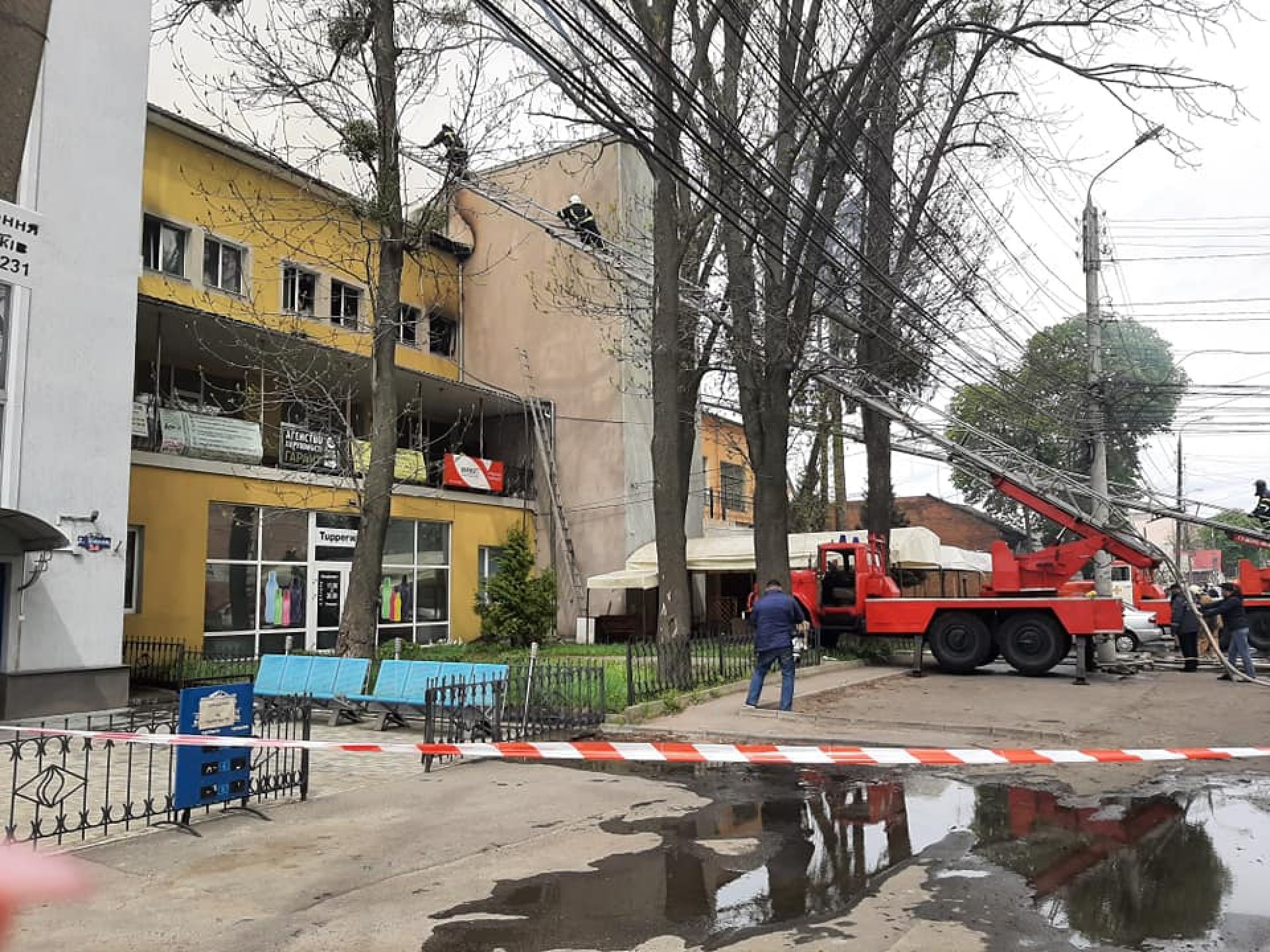 На вулиці Бевза нині не спокійно. З приміщень, де сталося займання евакуювати людей.