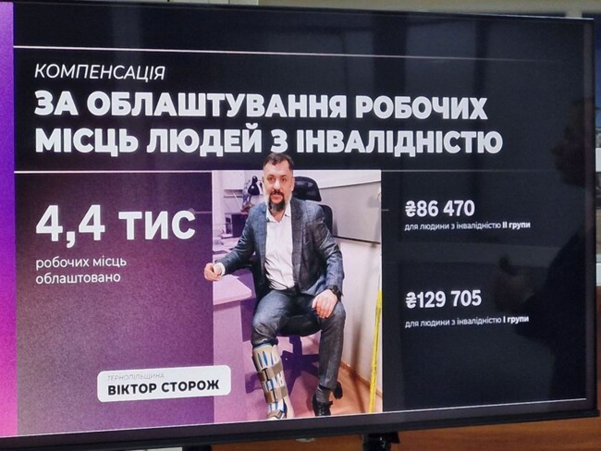 Також у програмі передбачено компенсацію за облаштування робочих місць для людей з інвалідністю. За час її реалізації вже створено 4,4 тисячі таких місць. Для осіб з інвалідністю ІІ групи компенсація становила 86 470 гривень, для І групи — 129 705 гривень.