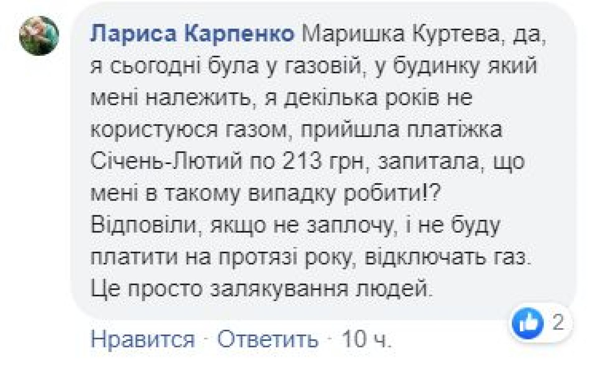 З коментарів видно, що таке питання хвилює багатьох. Дехто, розуміє, що платіжку розділили і треба платити, а дехто проти. Найбільше це хвилює тих, хто газом не користувався — за що ж тоді платити?