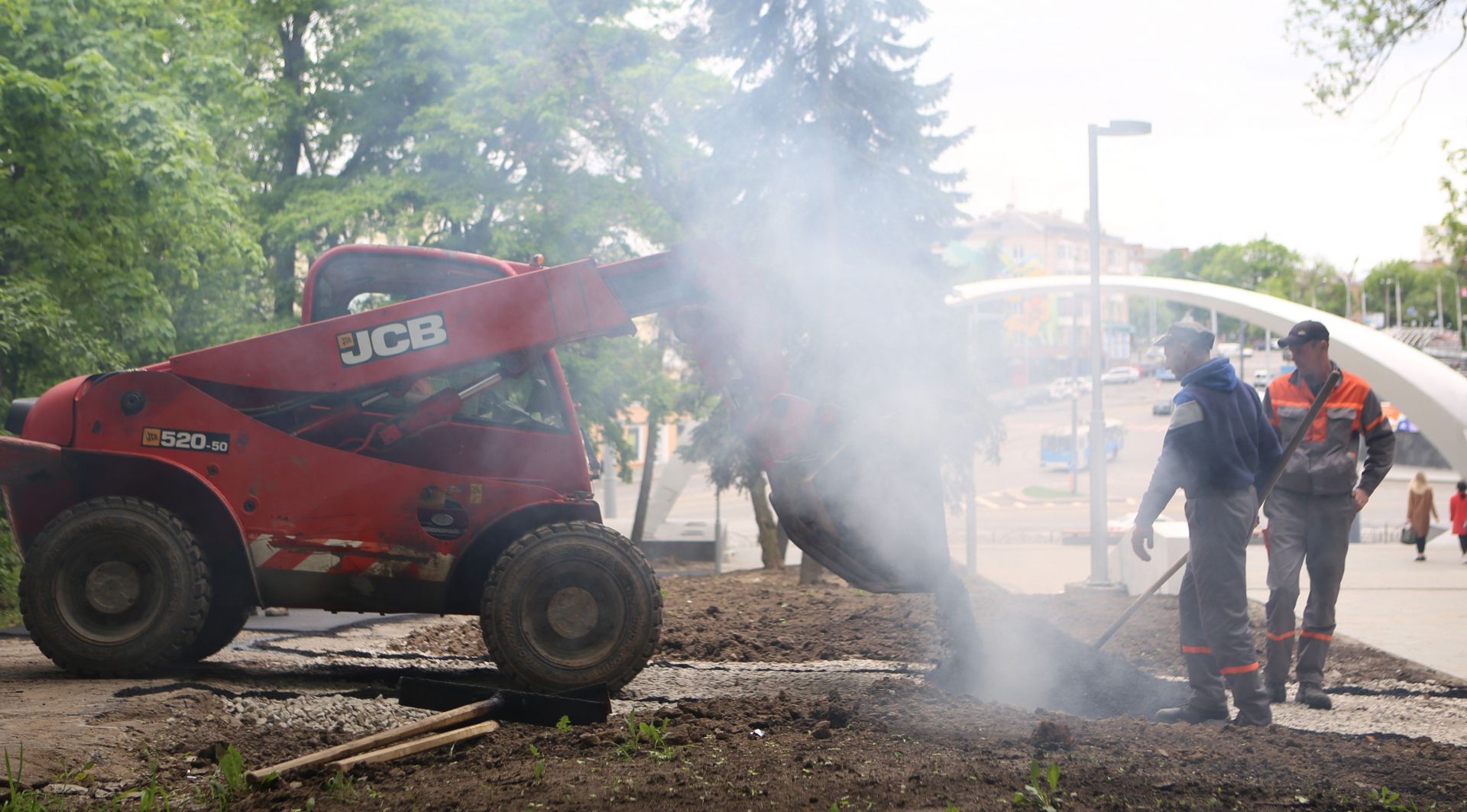Реконструкція входу до Центрального парку на завершальному етапі. Арку з алеєю та пандусом мають здати до Дня Європи, який святкуватимуть 18 травня.