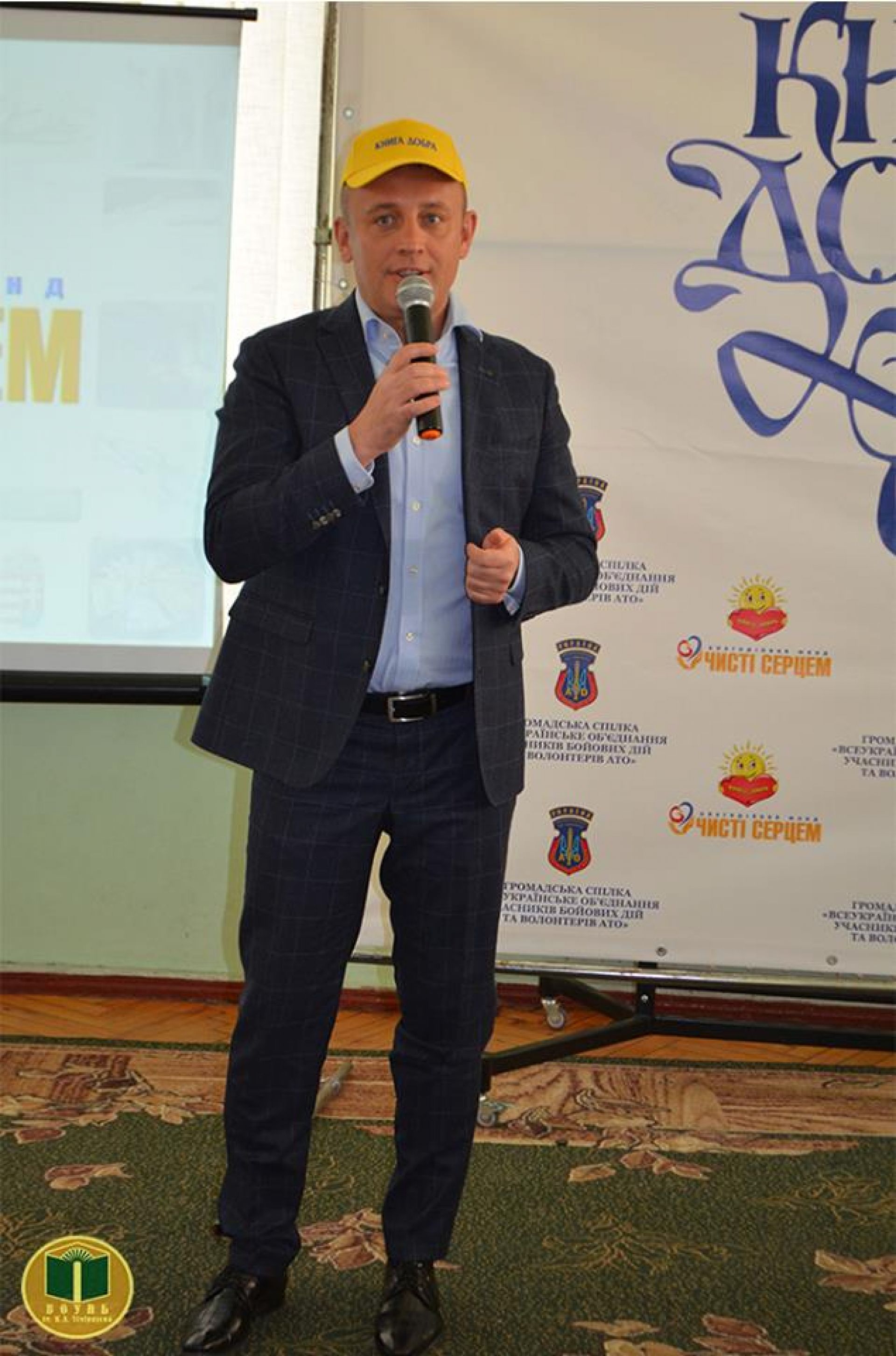 Сергій Кудлаєнко разом з Всеукраїнським об'єднанням учасників бойових дій та волонтерів АТО презентували у Вінницькій обласній універсальній науковій бібліотеці ім. К. А. Тімірязєва Міжнародний соціальний проект "Книга Добра" за участі школярів з усіх районів Вінницькій області.