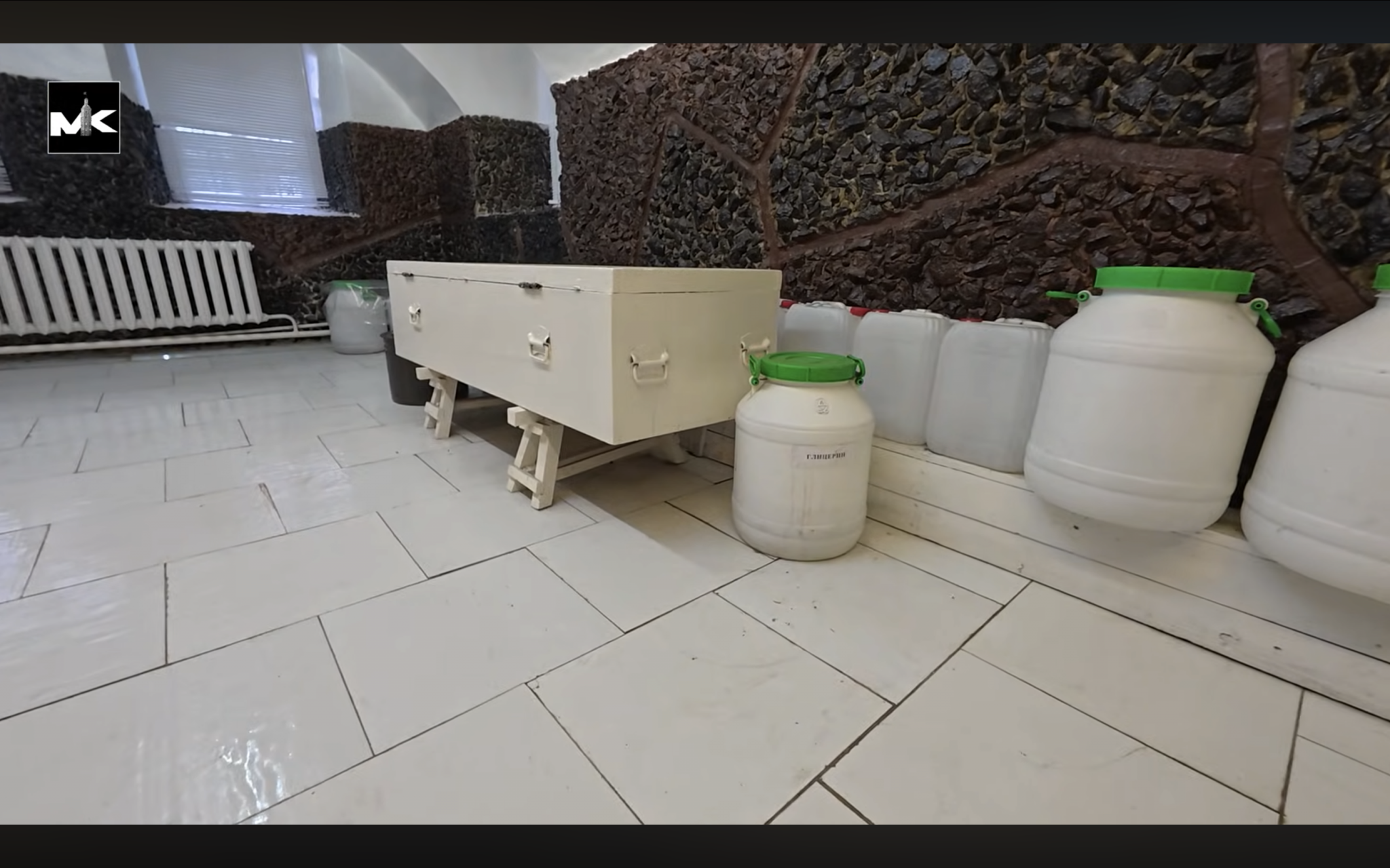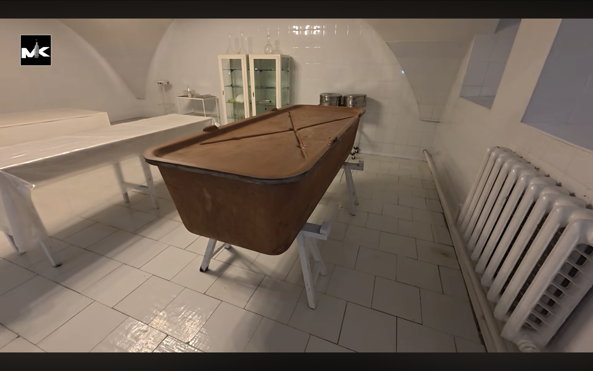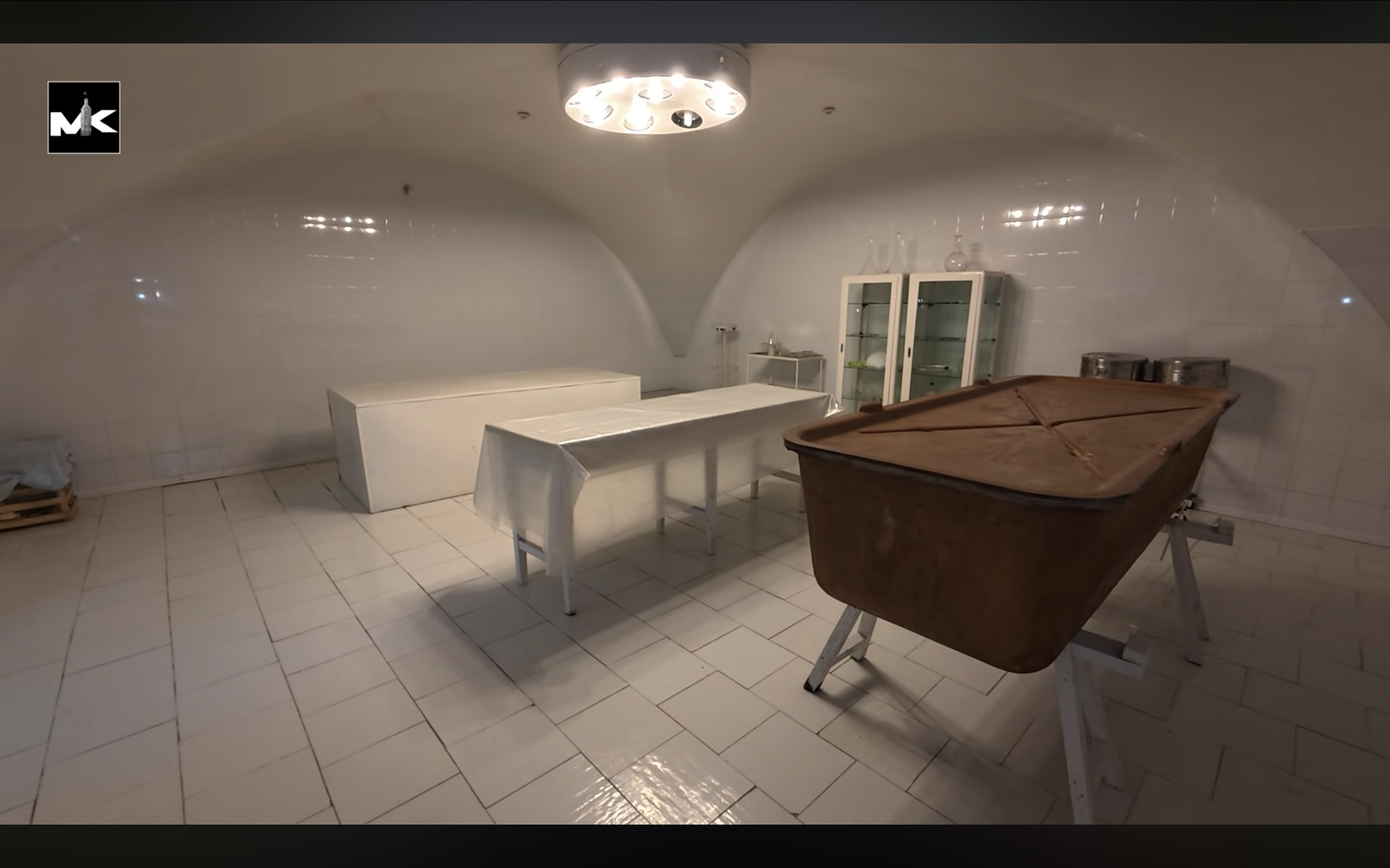 Лабораторія складається з двох кімнат. У першій знаходяться ємності з різними рідинами, які зупиняють розкладання тіла. А також металевий саркофаг, в якому тіло Пирогова приносять з церкви-некрополя.
