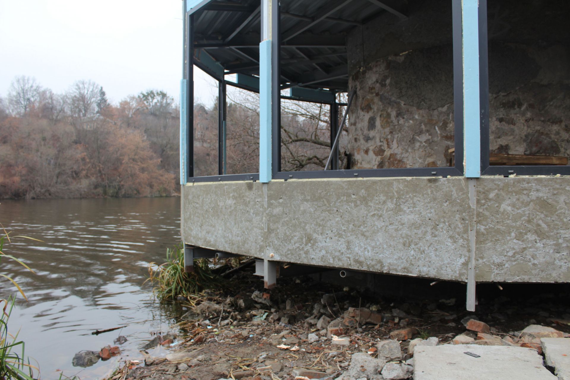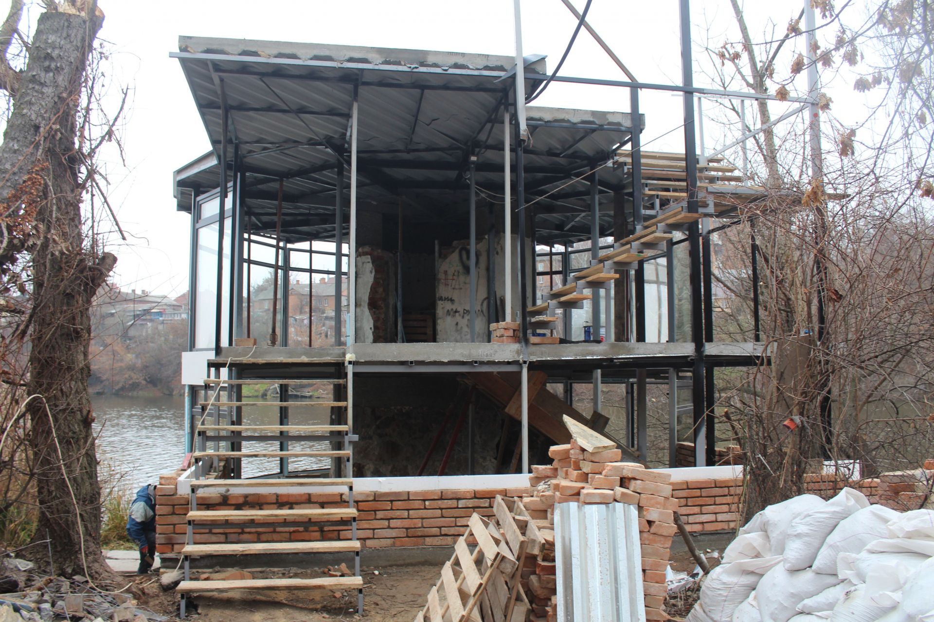 Новобуд нині складається з двох поверхів. Каркас звели навколо старої цегляної споруди. Ледь не половина майбутнього об’єкта «висить» просто над Південним Бугом.