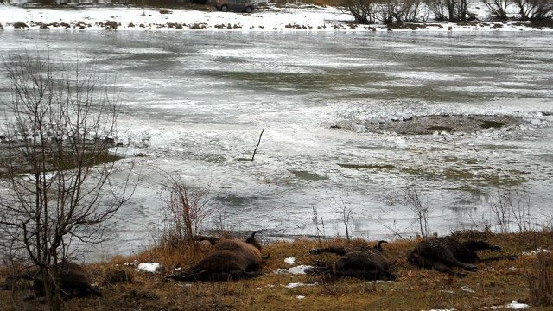 Взявши собак, вони почали гнати стадо на кригу. Лід не витримав ваги тварин і зубри почали йти під воду. Частині вдалося вибратися, інші — потопилися.