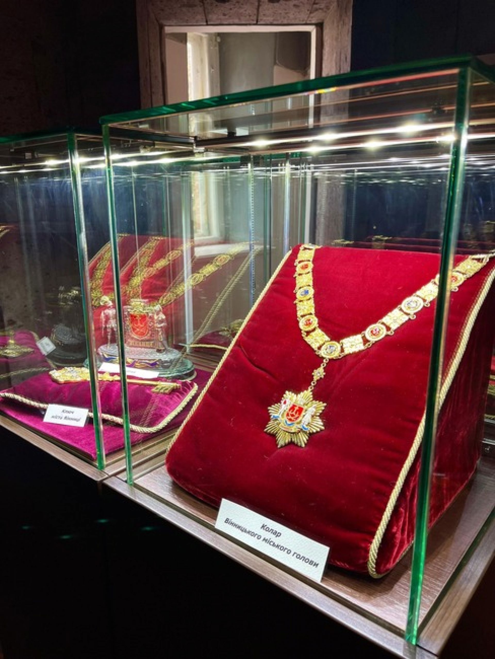 Як повідомляють на сторінці музею, на виставці відвідувачі зможуть побачити чинні клейноди Вінницького міського голови — Колар, а також Печатки та Ключ міста. «Клейноди, — зазначають у музеї, — це символи виборної влади місцевого самоврядування та офіційні атрибути Вінницького міського голови, які передаються йому під час урочистої присяги. З німецької «Kleinod» перекладається як скарб або невелика коштовна річ».