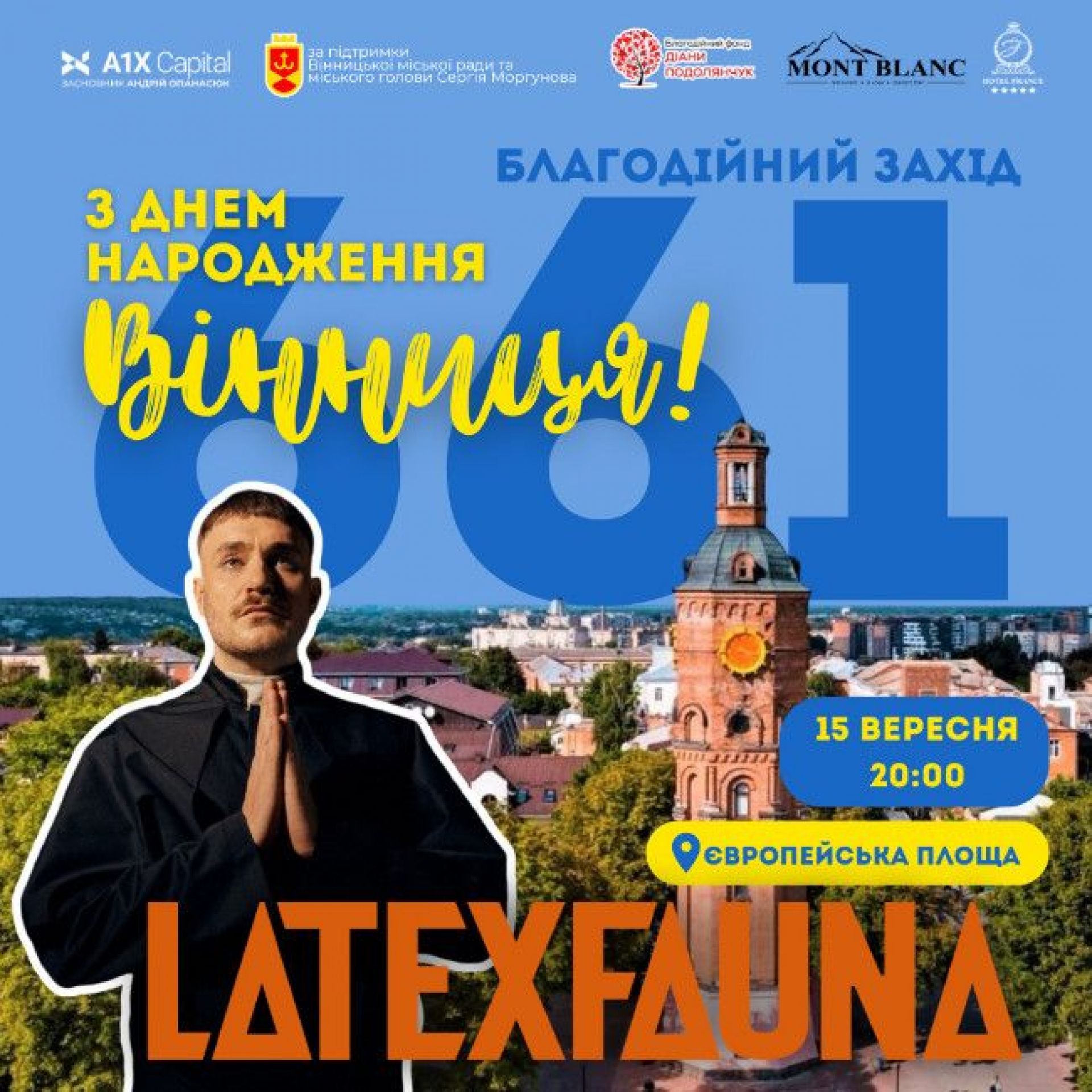 «15 вересня у Вінниці будемо чаклувати величезні донати з Василем Байдаком та зачаровуватись під ритми Latexfauna. Приходьте у цю неділю з друзями на Європейську площу, початок о 19.00. Основною метою заходу є збір коштів на один з найпотужніших спецпідрозділів Головного управління розвідки Міністерства оборони України», — йдеться у анонсі.