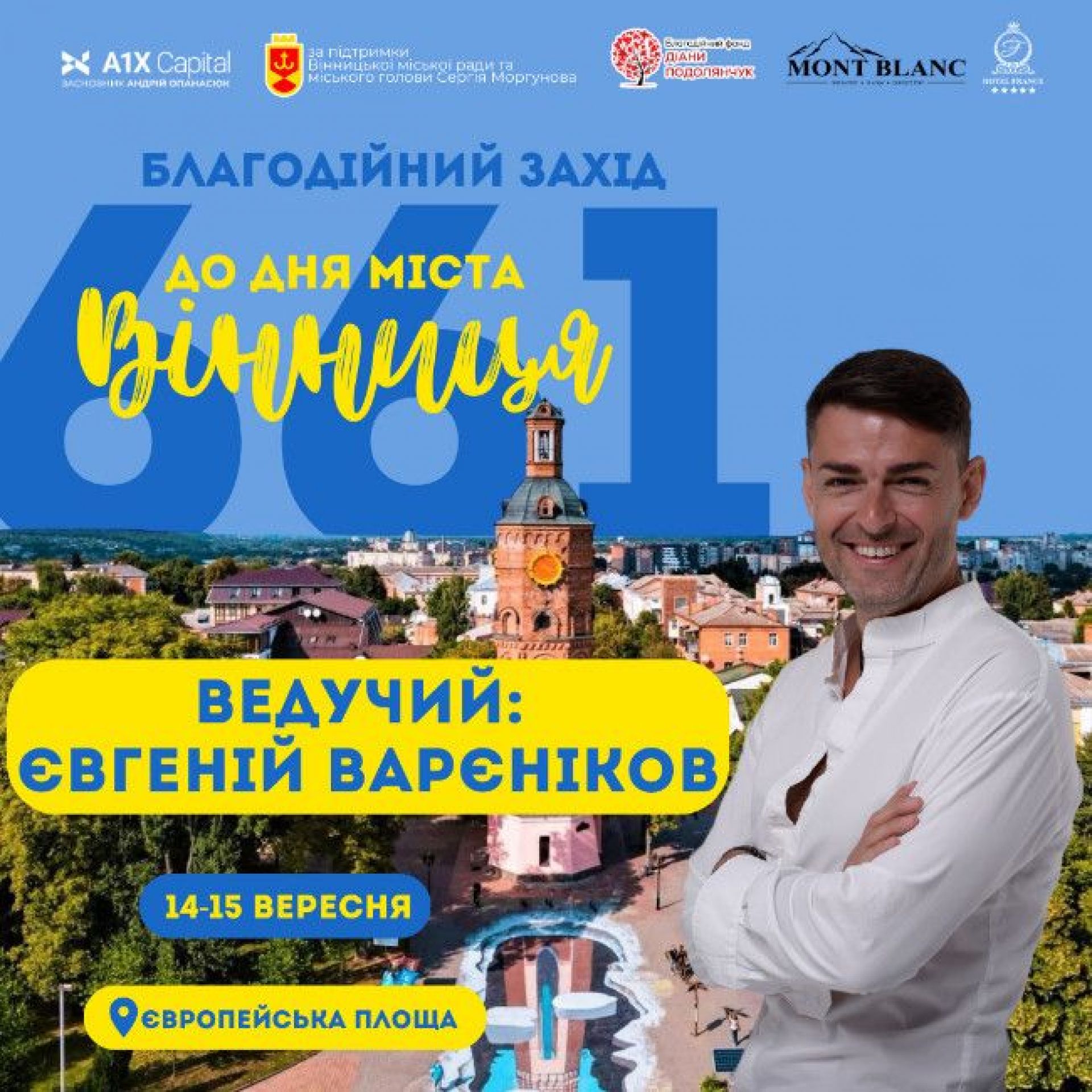 - Цього року Вінниця відзначає свій 661 день народження! Містян та гостей Вінниці запрошують на благодійний захід, який відбудеться на Європейській площі.