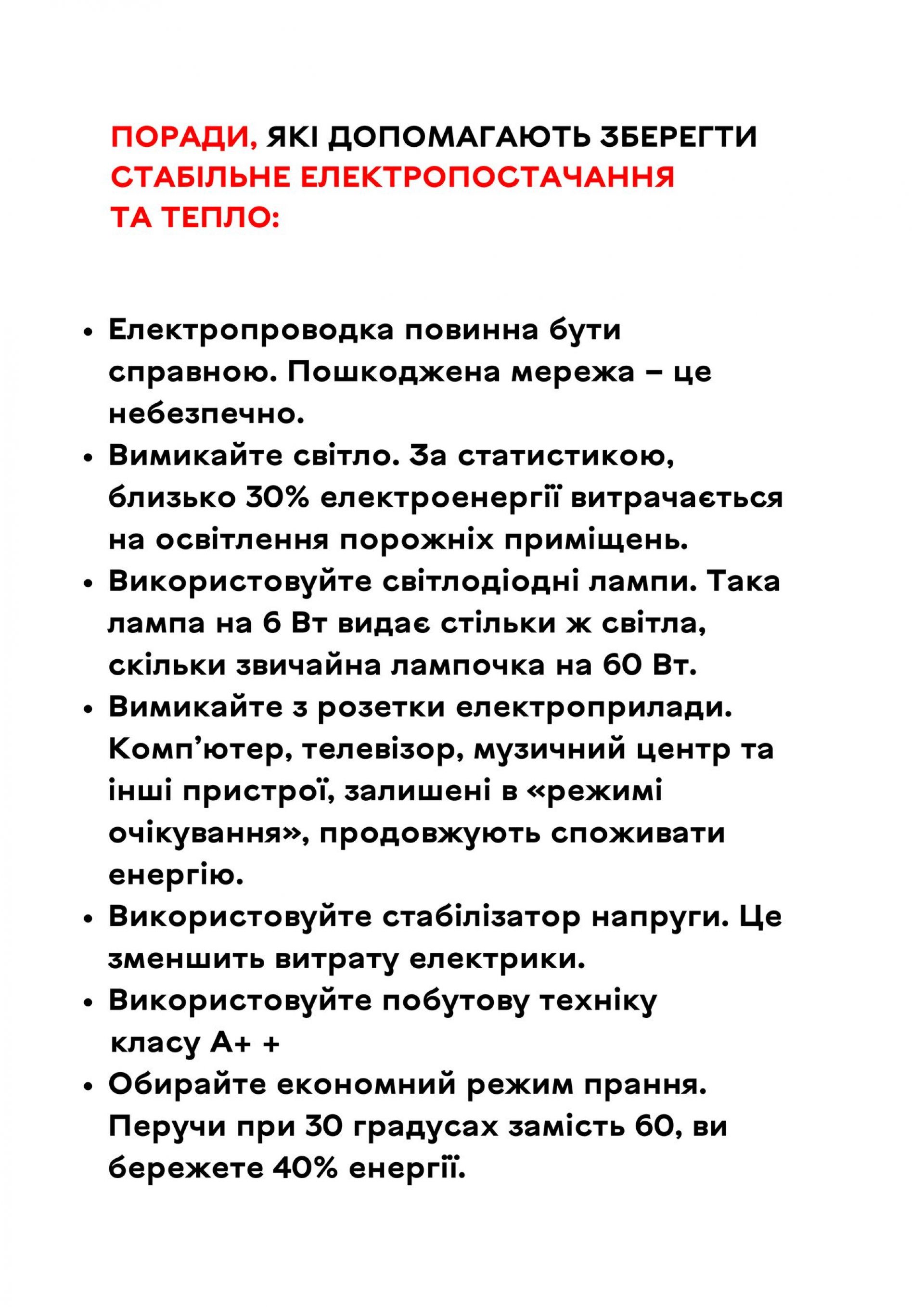 Там же надали поради як зберегти стабільне електропостачання та тепло взимку:
