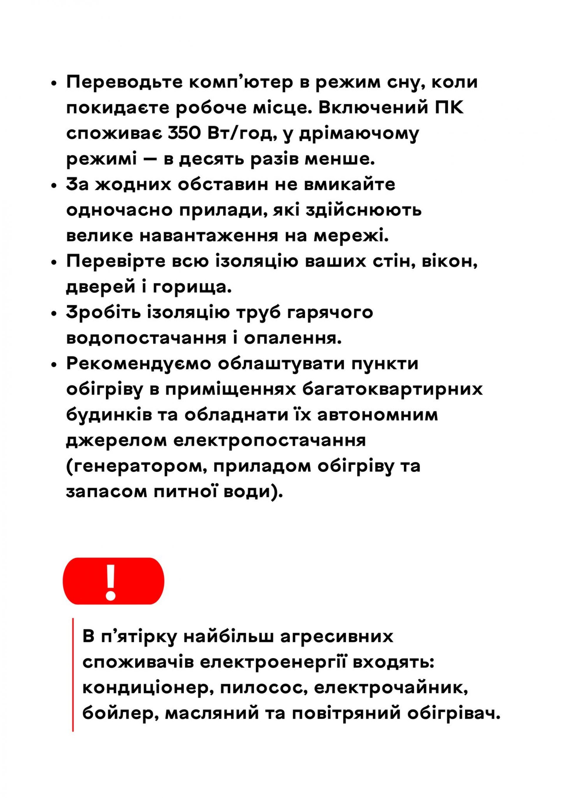 «Перевантаження електромережі може призвести до пошкодження системи, пожеж та перебоїв з електропостачанням», — йдеться в пам’ятці.