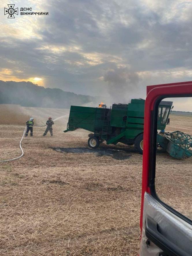 За межами села Ганнівка Липовецької громади, бійці ДСНС ліквідували пожежу комбайна, який зайнявся через перегрів двигуна. А в селі Збаржівка Вінницького району, порушення правил пожежної безпеки при монтажі печі спричинило загоряння в літній кухні.