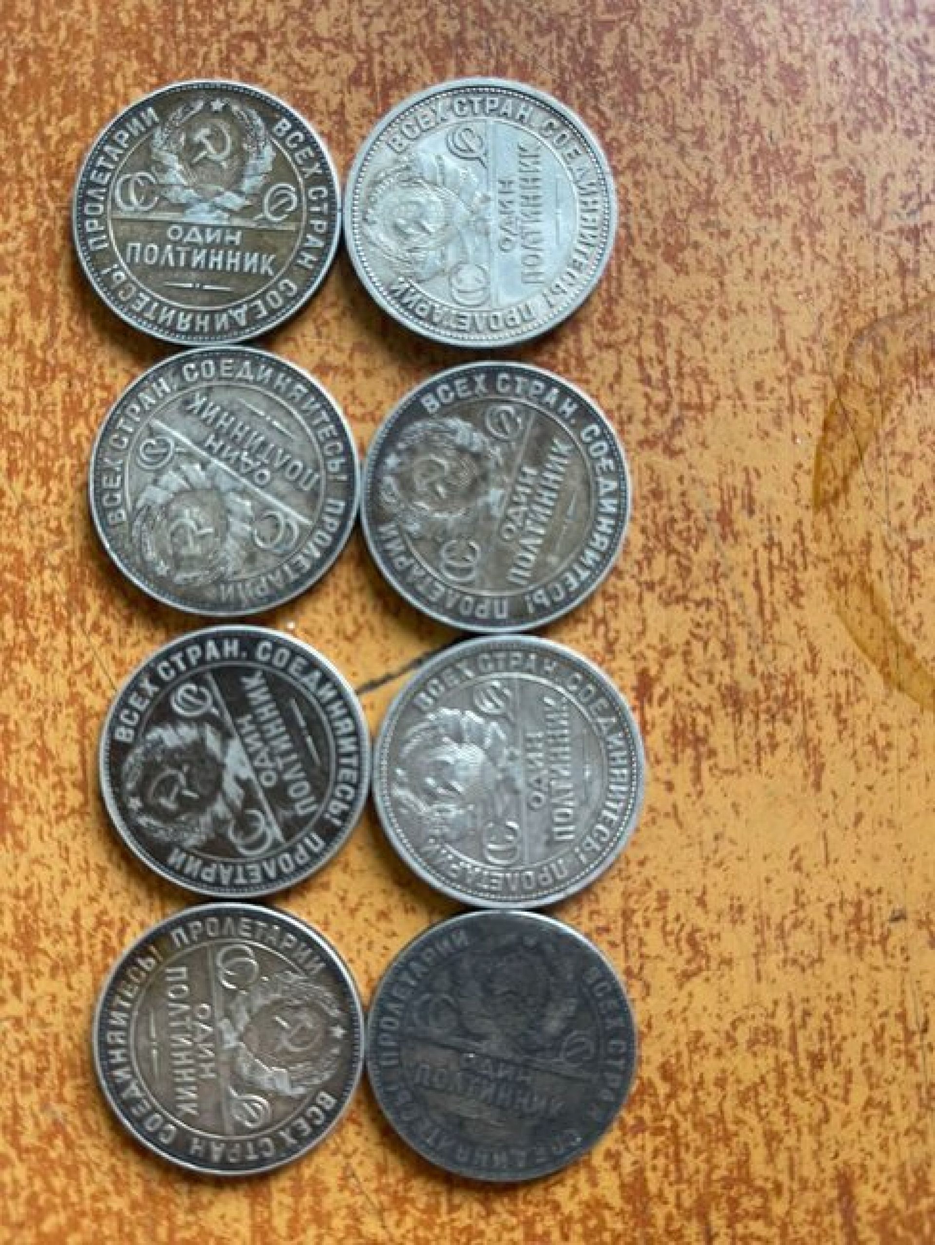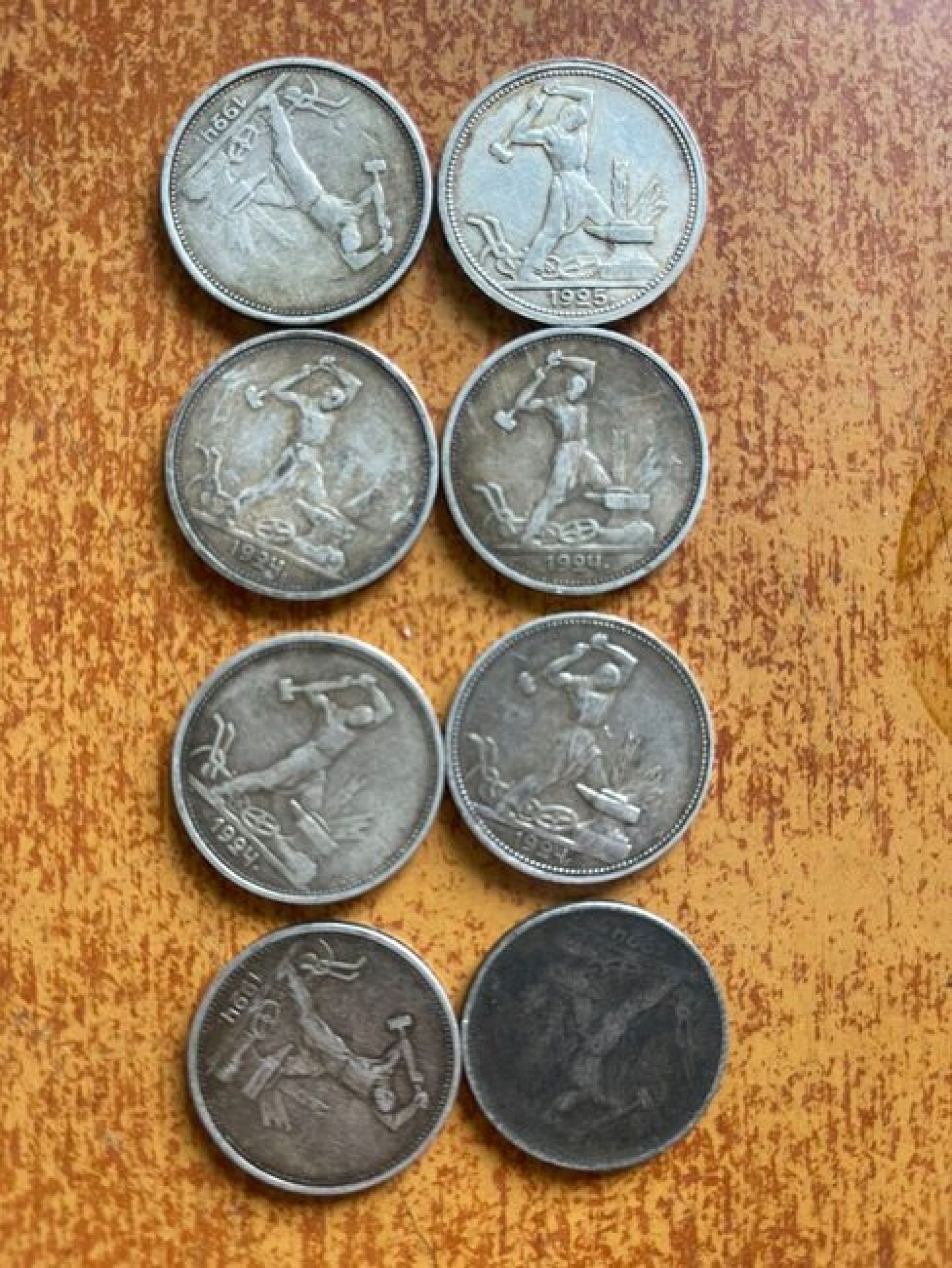 - сім срібних монет номіналом 50 копійок 1924 року;