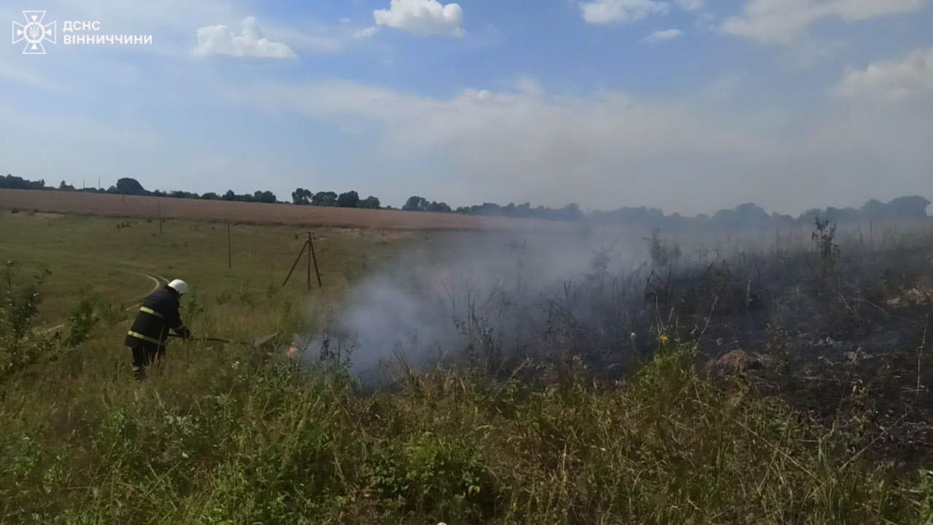 Вогонь охопив понад два гектари сухої рослинності у Гайсинському, Могилів-Подільському, Вінницькому та Жмеринському районах.