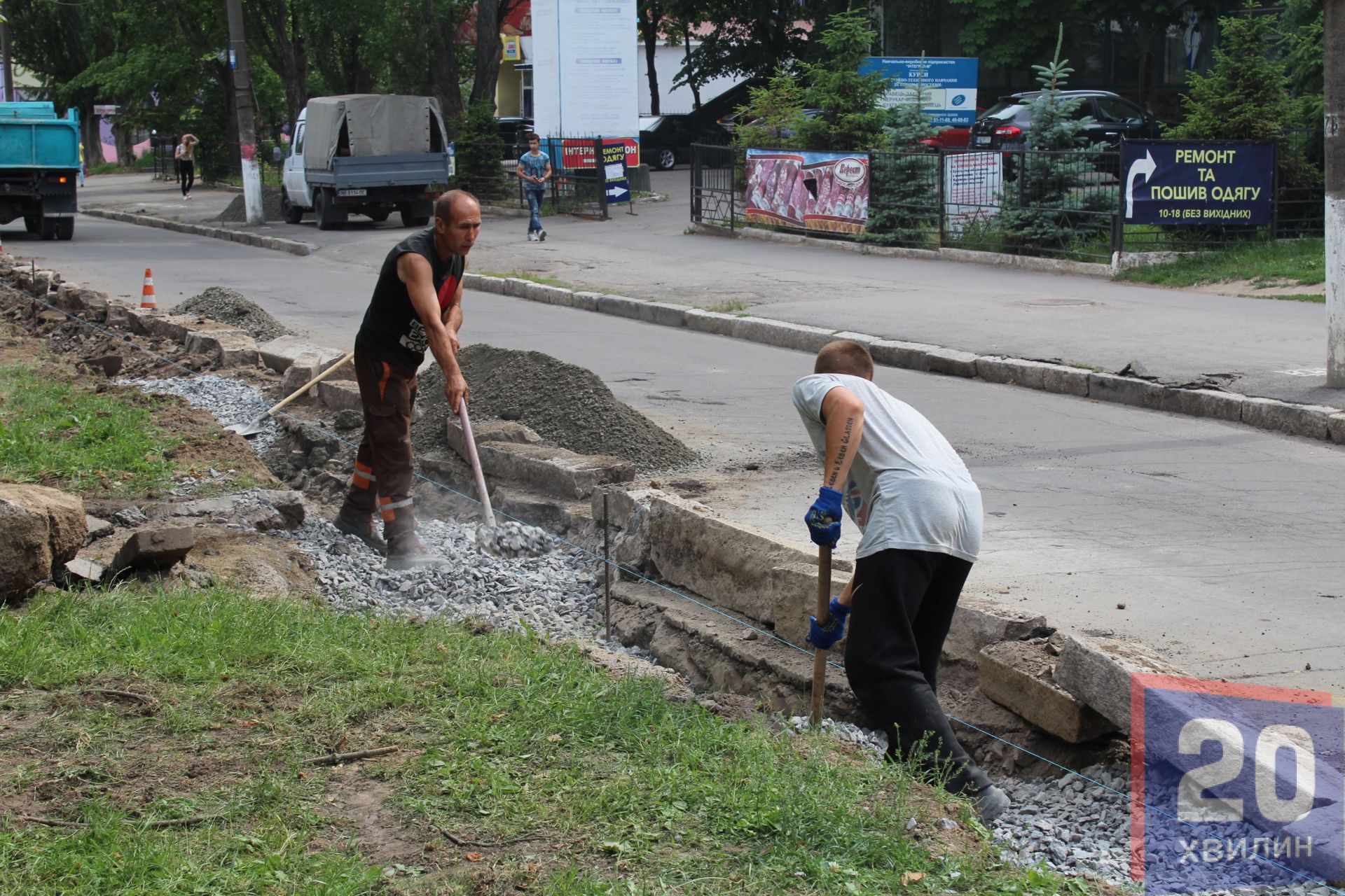 А робітники з товариства «Шляхбуд» займалися розширенням дороги. А саме розширять на 1,5 метра за рахунок тротуарів по обидва боки від алеї. Це все контролює генпідрядник — товариство «Олеріт».