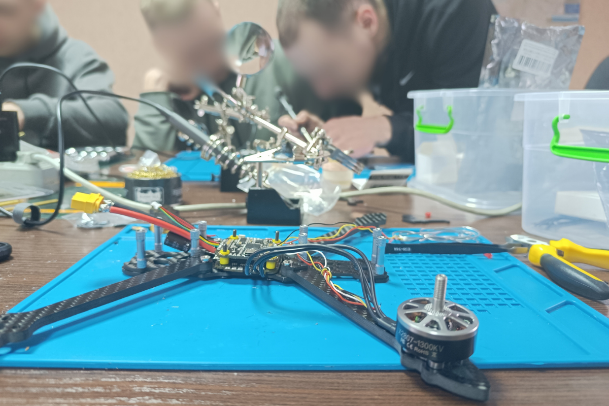 Ми багато разів повторювали одні й ті самі дії, тому вже до кінця курсу, коли ми з нуля самі збирали дрон, ми добре знали про послідовність дій. З флюсом, припоєм та гвинтиками проблем я більше не маю.