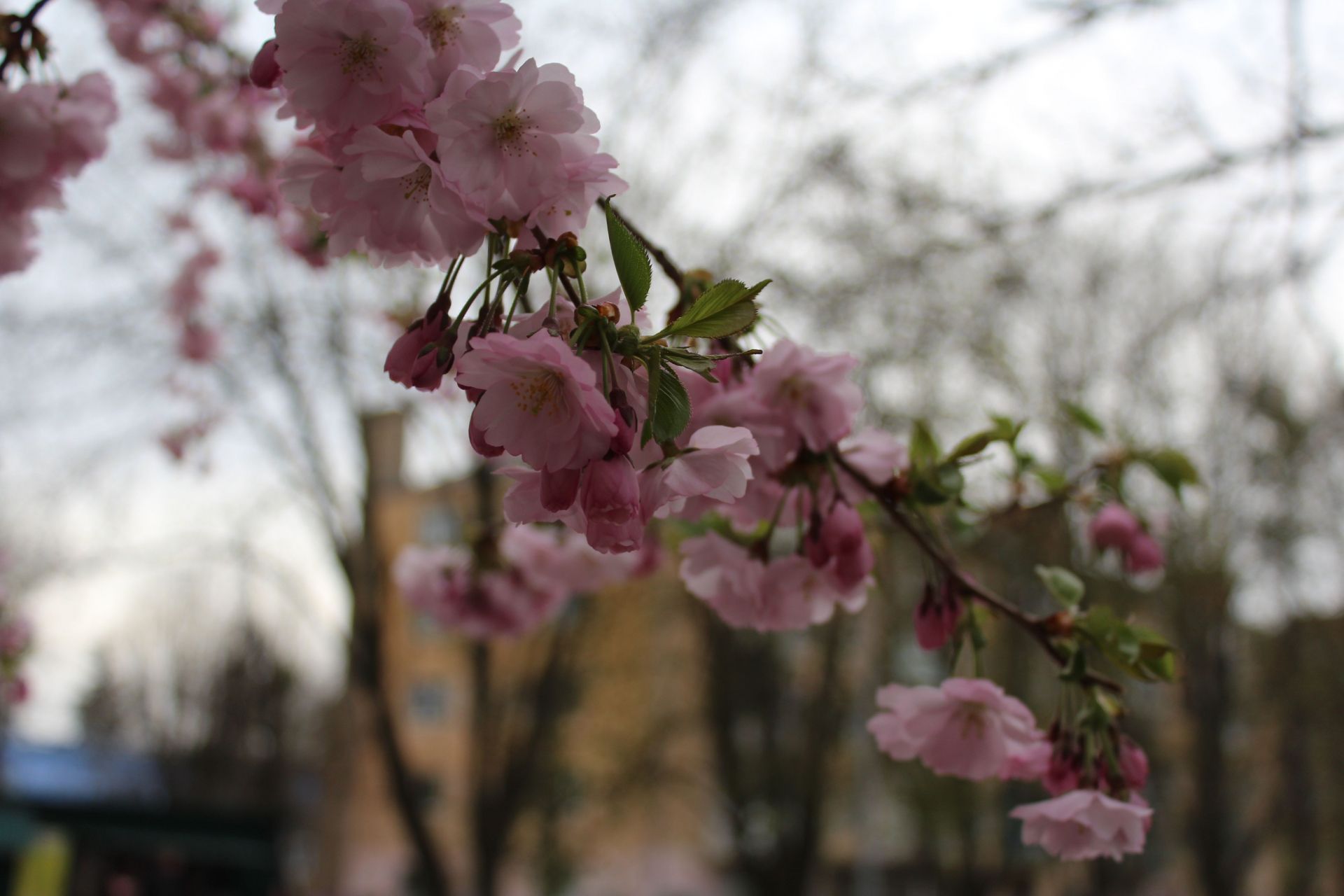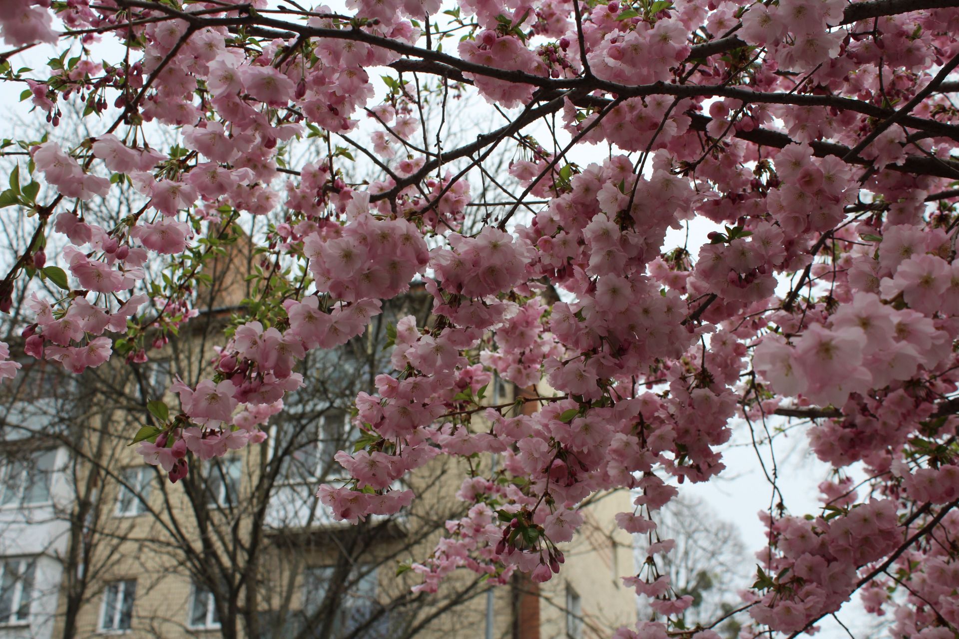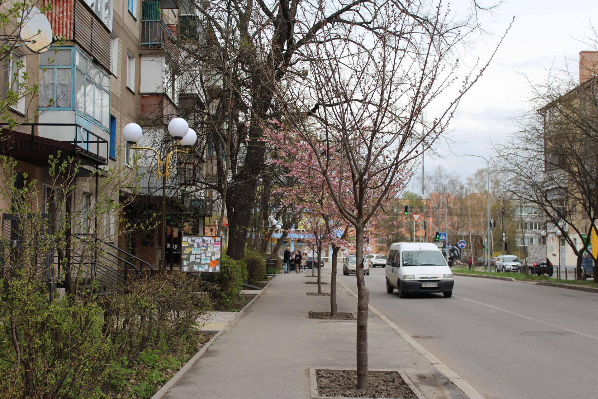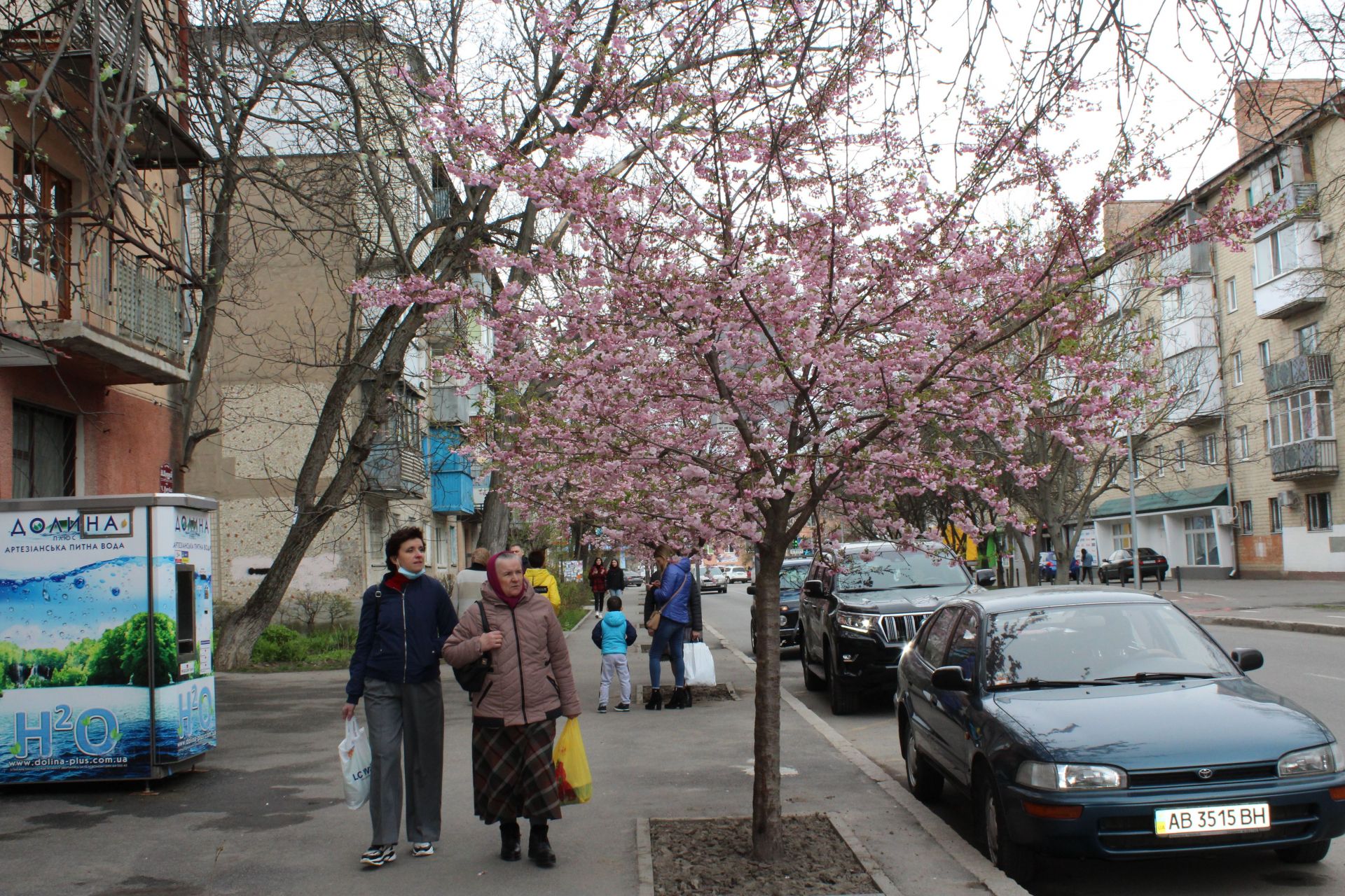 Не всі сакури вражають своїми розмірами та квітучістю. Деякі — вже цілком розпустилися та радують вінничан красою. Але є й кілька таких, які досі стоять майже «голі».