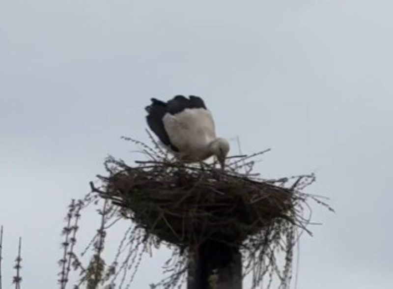 Лелека повернувся на Великдень: продовження історії, як подружжя з Ямполя відновило згоріле гніздо