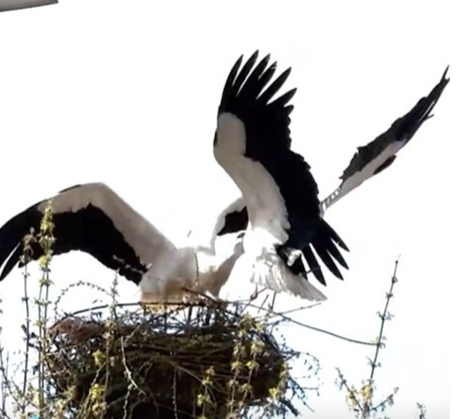 Уже у понеділок, 13 квітня, у гнізді можна було побачити двох птахів.
