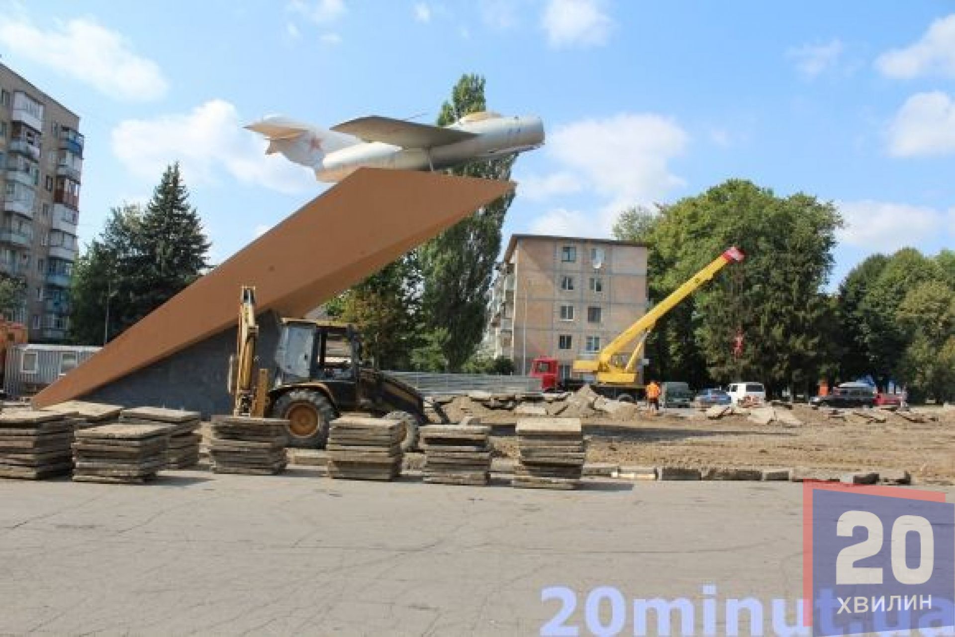 До речі, коли ж з’явиться літак? Як розповідав очільник міського департаменту капітального будівництва Ігор Кравець, постамент з літаком МіГ-15 з’явиться на площі до Дня міста.