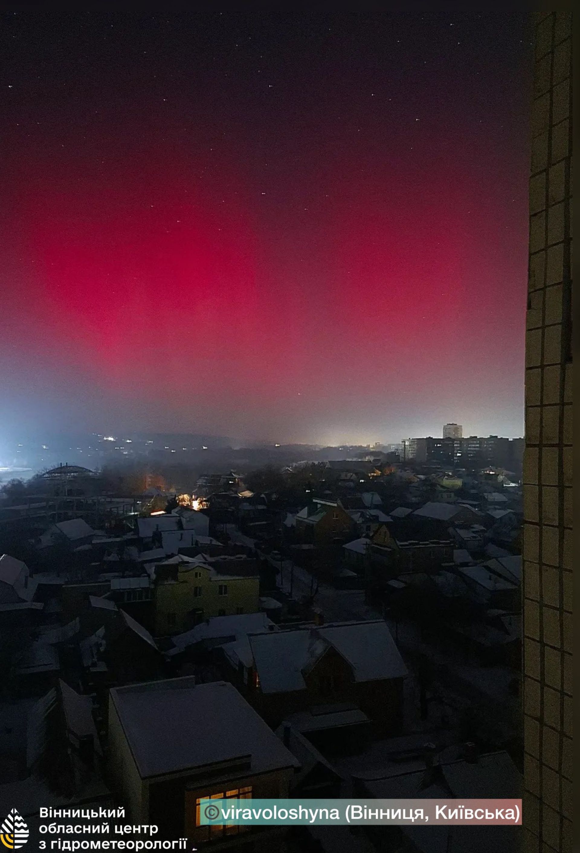 — «Краса — страшна сила», проте незважаючи на поганий вплив на самопочуття та все інше, Полярне сяйво неймовірно гарне, — передають вінницькі синоптики. — Ми, українці, вже звикли бачити «склянку наполовину повною», тому, бо нічого відвернути не можемо, то насолоджуємося цим яскравим явищем, що для нашого регіону надзвичайно рідкісне та нетипове.