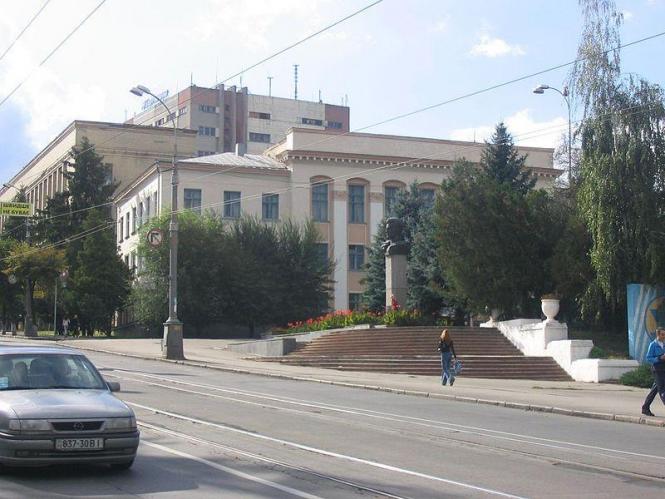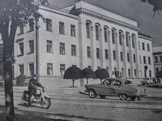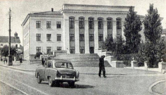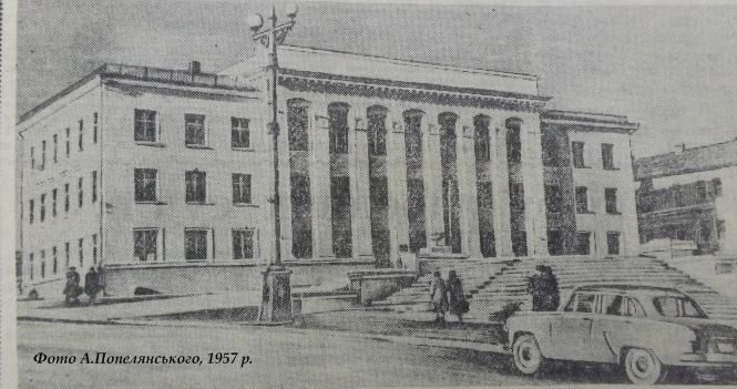 Фото 1957 року, опубліковане в газеті. Автор — А. Попелянський. Це — Вінницький міський комітет Комуністичної партії України, споруджений 1958 року.