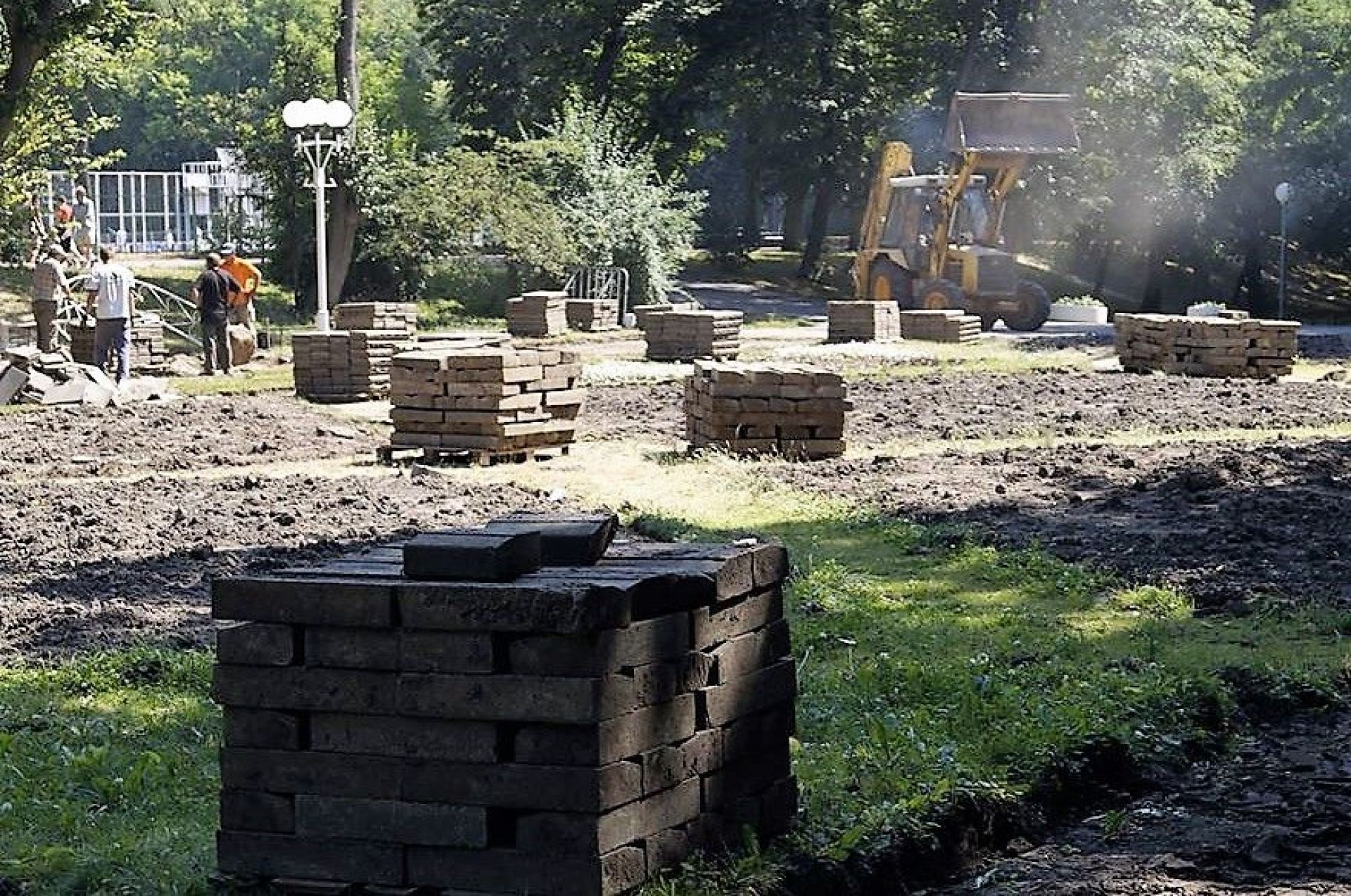 — Зараз триває підготовчі роботи та демонтаж старої плитки. Її ми не викидаємо, бо в департаменті благоустрою можуть знайти їй нове призначення. Проходи в алеї залишаться такими ж, як й були по проекту. Зміниться покриття доріжок — клінкерна плитка двох кольорів. По крайніх алейка буде одного кольору, а в середині іншого кольору. Але ми не виготовляємо 3D-макети, це робить інша організація, — розказав представник підрядника Володимир Семикрас.