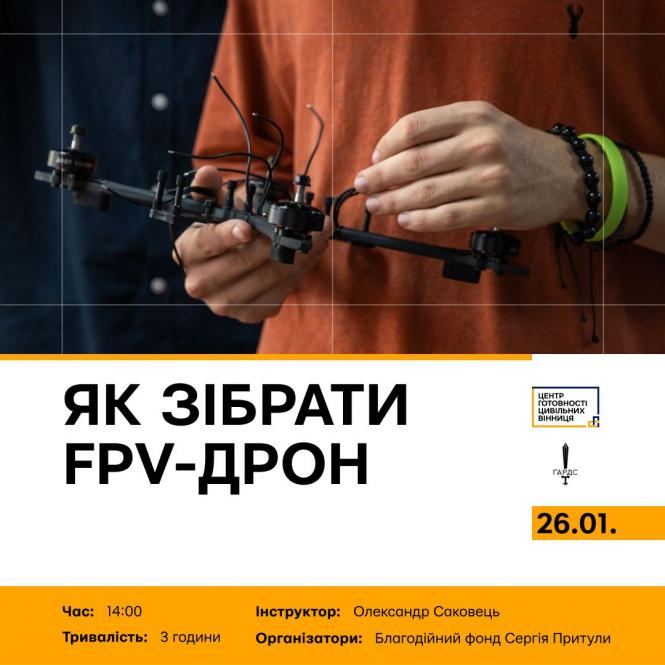 Другий тренінг — «Як зібрати FPV-дрон». Він розпочнеться о 14.00. Програма заняття включає такі теми: