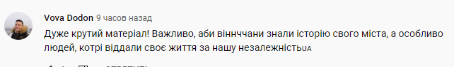 — Дуже крутий матеріал! Важливо, аби вінниччани знали історію свого міста, а особливо людей, котрі віддали своє життя за нашу незалежність, — коментує Володимир Додон.