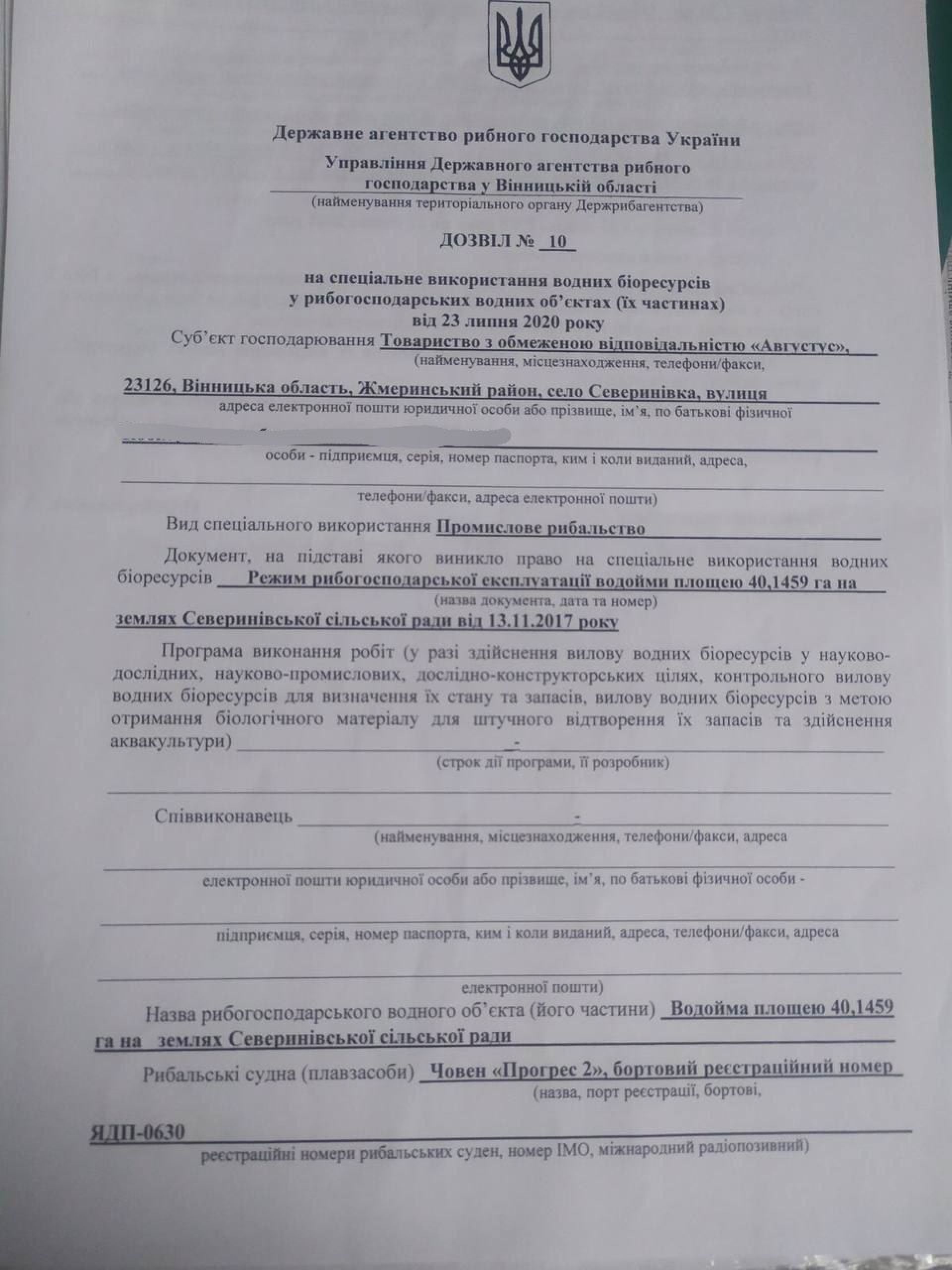 Ми також запитали, чи не було підставою Режим рибогосподарської експлуатації та Дозвіл №10, які робили ТОВ «Августус» користувачем промислового лову на Северинівському ставі до грудня 2026 року, попередити про намір продажу в оренди цієї водойми?