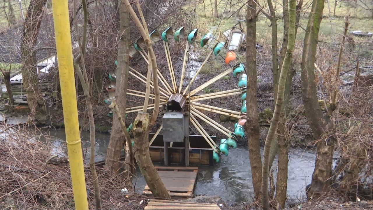 — Це було продумано з самого початку — не ставити колесо посередині річки, — розповідає майстер. — Тому установка не зможе завдати шкоди. Всі, хто тут живе, знають, як тільки пройдуть рясні дощі, вода в річечці піднімається. Її рівень не залежить від колеса. Під час одного з таких дощів по річці пливли гілля. Вони зламали одну шпильку кріплення стійки. Моя робота уже постраждала.