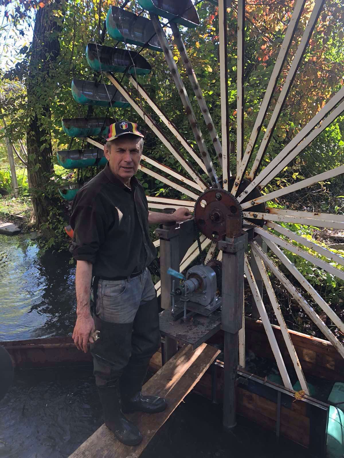 Він запевняє, що своєю установкою не перешкоджає течії. Показує, що колесо знаходиться тільки на тій частині річечки, яка ближче до берега, де знаходиться гараж.