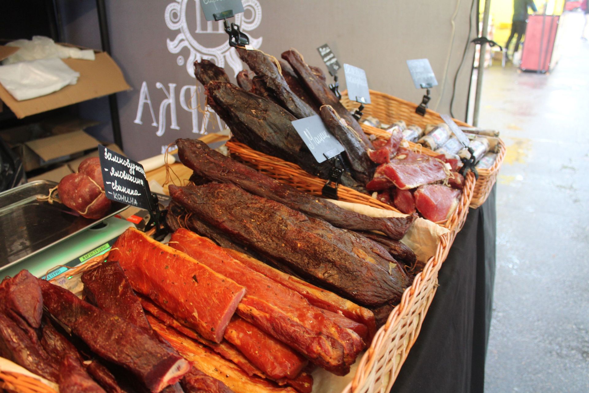 А ще можна придбати в’ялене м’ясо: конина, яловичина, свинина при ціні 55 гривень за 100 грам.