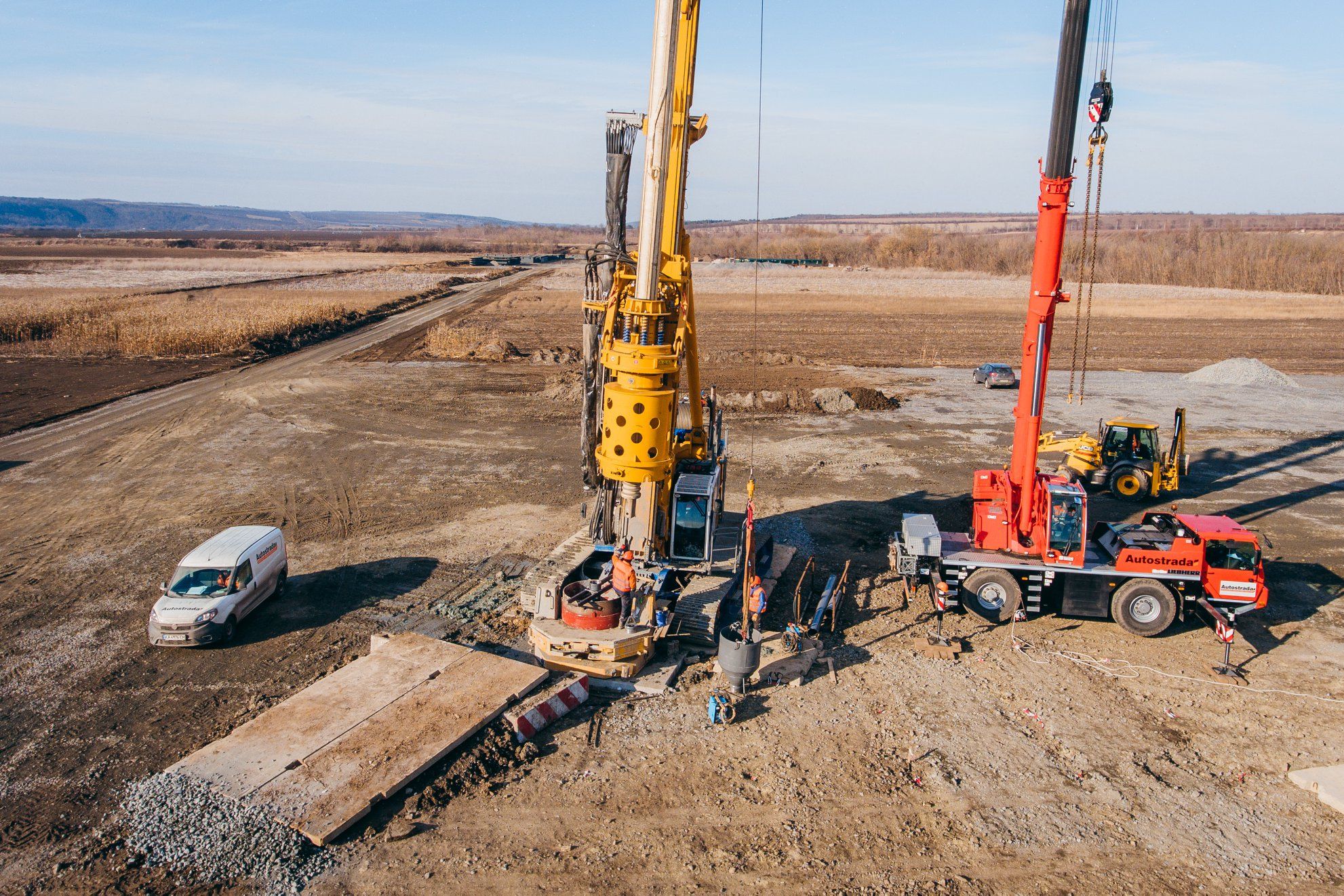 За інформацією Укравтодору, роботи ведуться цілодобово. Вже пробурили та забетонували 12 паль, що стануть фундаментом для опор мосту. На одну опору потрібно 15 паль. Загалом по проекту передбачено 24 опори.