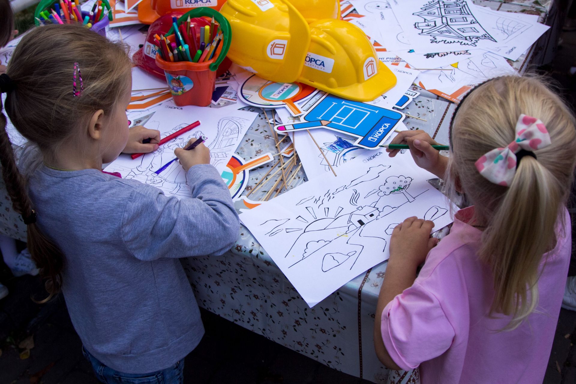 Для найменших відвідувачів ми підготували цікаву фотозону, біля якої можна було сфотографуватися у касці, з іграшковими будиночками, рулетками та плоскогубцями. Також на дітей чекала величезна розмальовка з олівцями та фломастерами, яку вони залюбки розмальовували протягом всього свята.