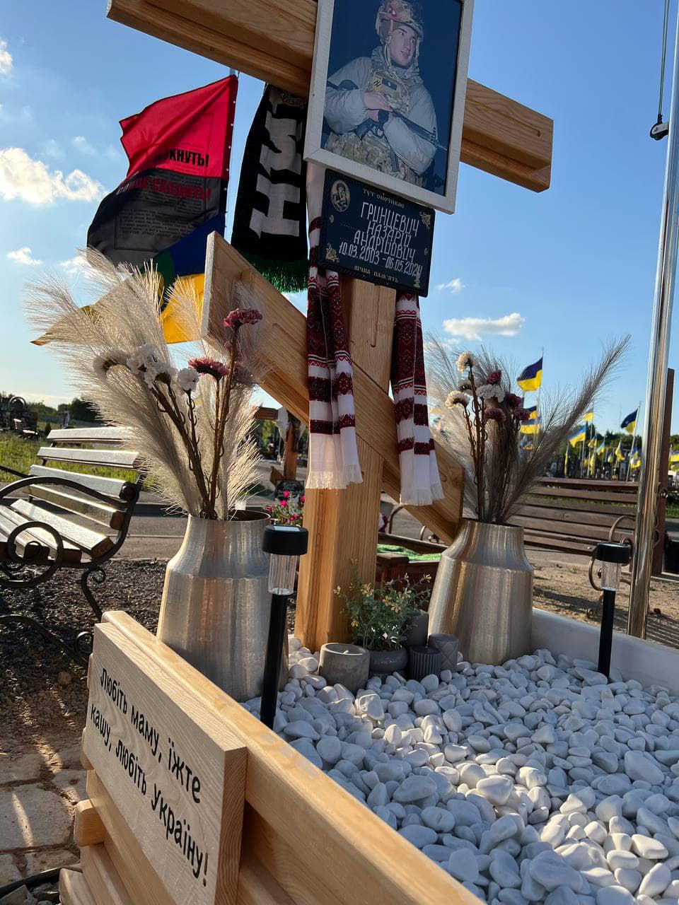 — У День Конституції уся наша влада пішла пофоткатись на Соборній,— ділиться Маріанна.— Ні однієї квітки на могили захисників не принесли. А в день похорон Назара всі люди тонни квітів несли, а від влади принесли вінок пластиковий, який я одразу викинула... за що наші діти гинуть? Я скільки можу, стільки буду боротися, а люди мене підтримають, і не лише у Вінниці. Я досі у жалобі, але вдалася до кардинальних, болючих змін у своїй зовнішності, бо я не можу мовчати. Бо в 40 років сидіти щодня на могилі своєї дитини — це не нормально у державі, в Україні. А корумпована влада від людського суду нікуди не дінеться. Моя дитина не буде лежати тут, а вони крастимуть далі — я не дозволю. Мій син боровся за Україну, а я продовжу його шлях.